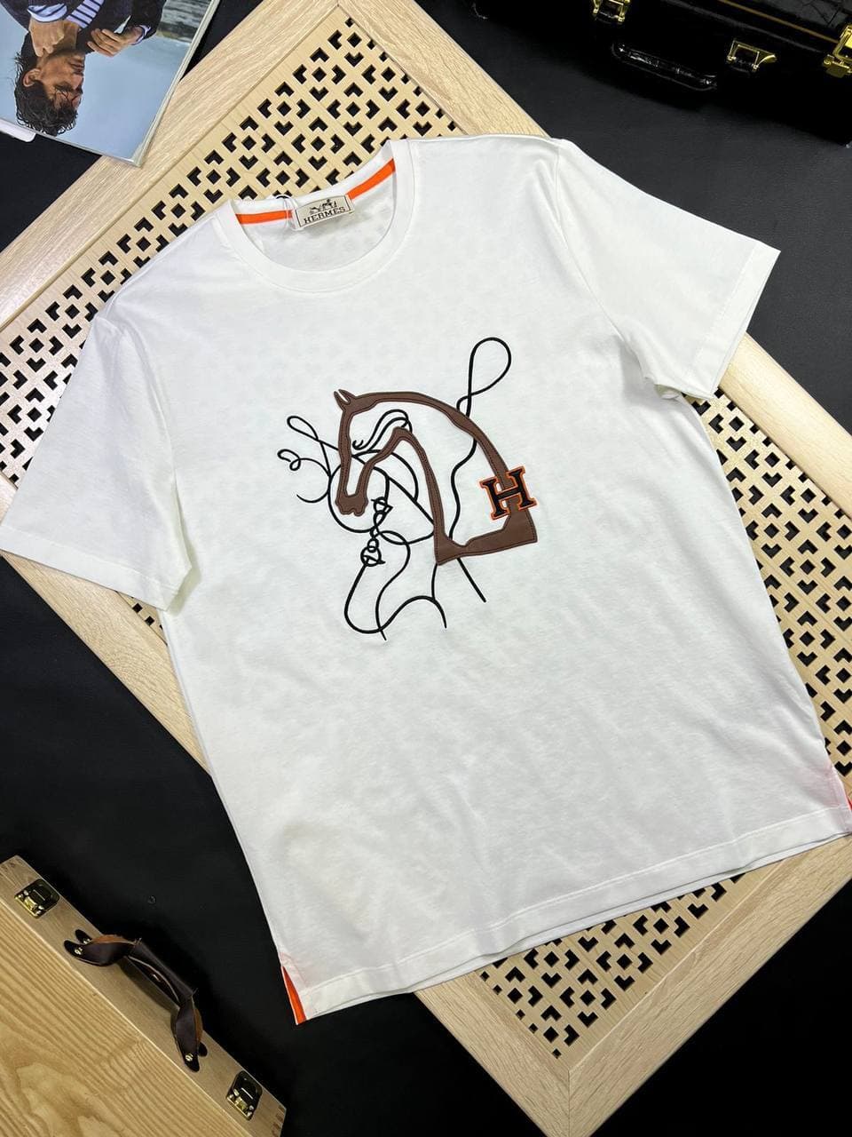 Футболка Hermes LUX-62693 – это стильная и элегантная вещь, сочетающая в себе лаконичный дизайн и высокое качество. Белый цвет футболки дополнен оригинальным принтом в виде стилизованного изображения лошади и буквы "H", что придает ей узнаваемый шарм бренда Hermes. Модель идеально подойдет для создания расслабленных, но при этом изысканных образов.