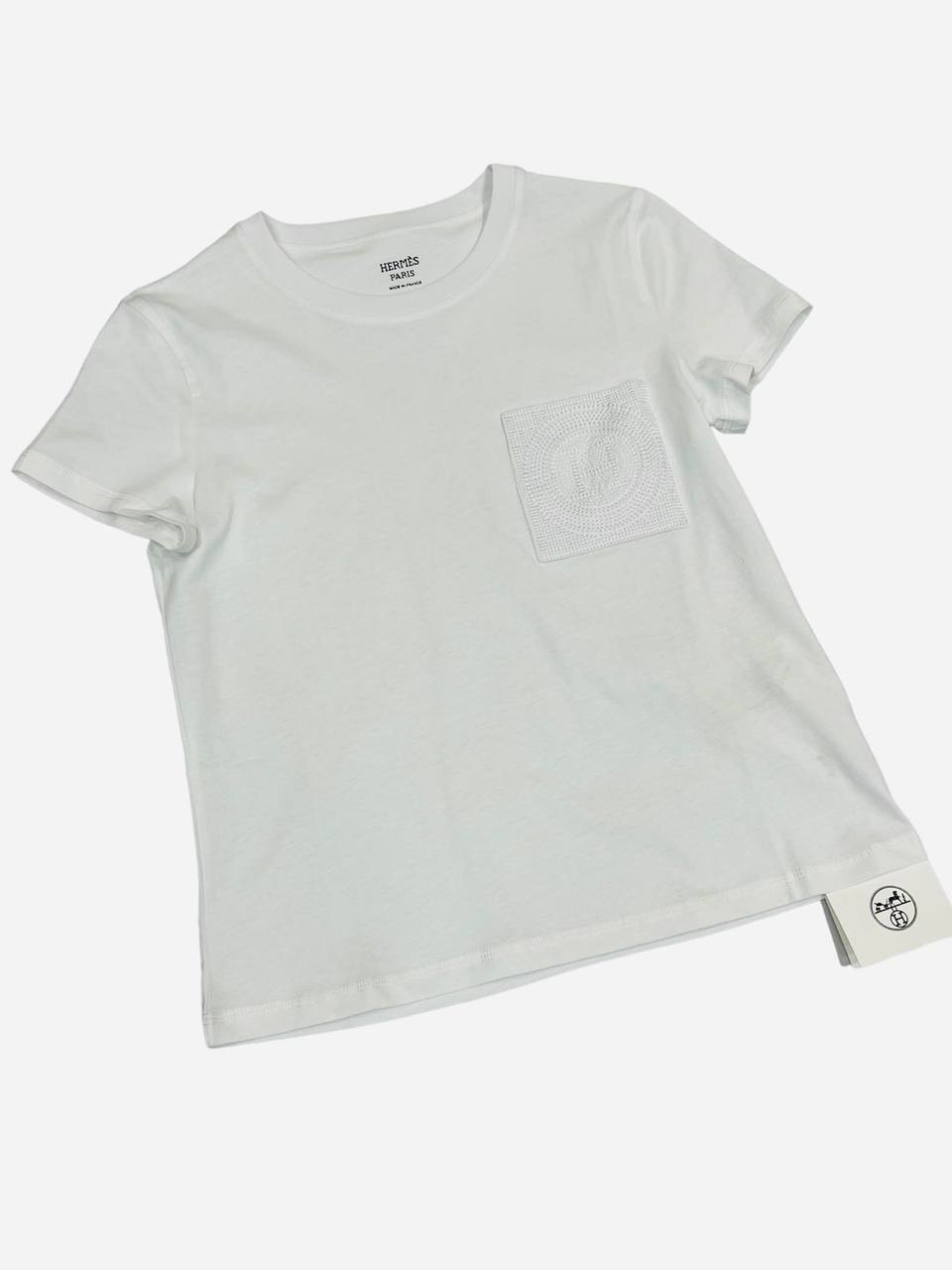 Футболка Hermes LUX-88267 — это классическая футболка в белом цвете с небольшим кармашком на груди. Этот предмет гардероба идеально подходит для создания базовых, но стильных образов. Она выполнена в минималистичном стиле, который подчеркивает элегантность и утонченность.