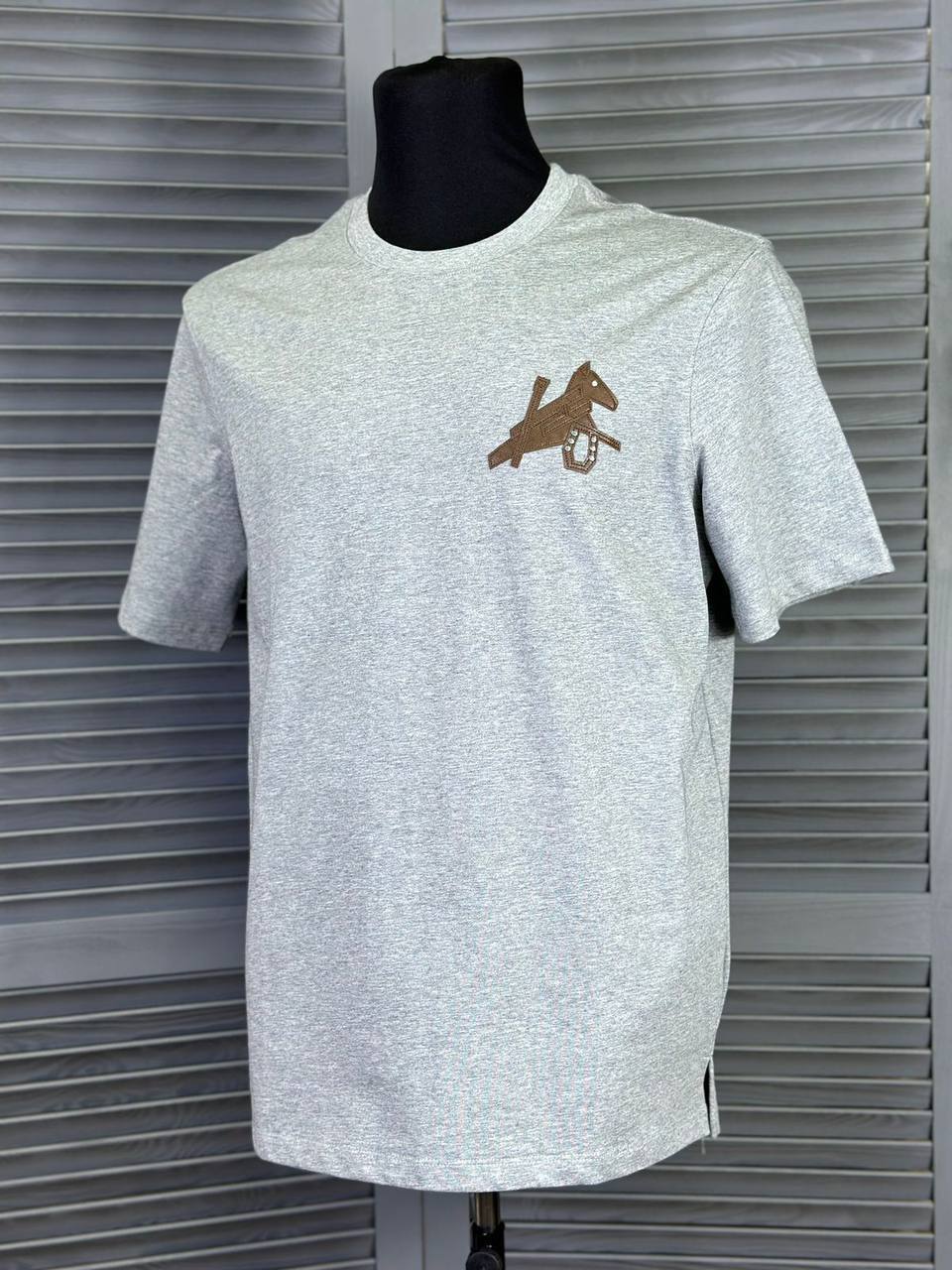 Футболка Hermes LUX-92115 представляет собой воплощение классического стиля, идеально подходящую для повседневного гардероба. Серая футболка с круглым вырезом декорирована небольшим вышитым логотипом. Ее универсальный дизайн позволяет сочетать футболку с различными элементами одежды.