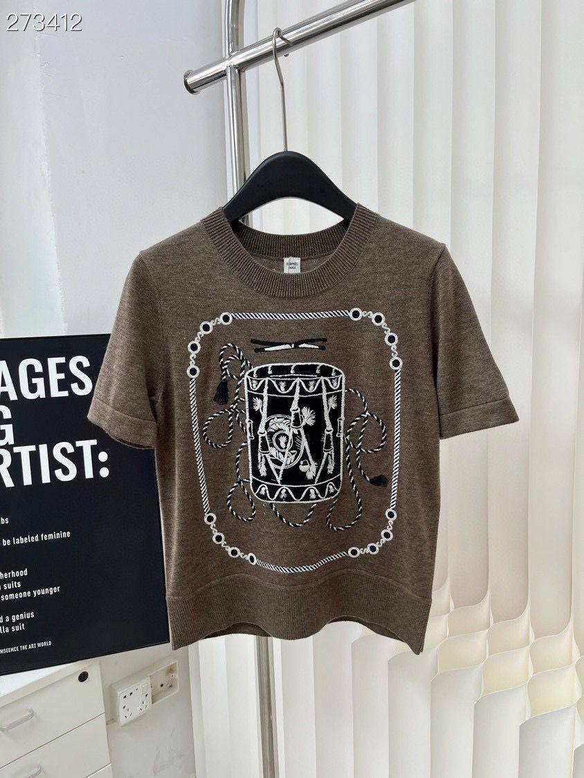 Футболка Hermes LUX-104461 – это стильный предмет гардероба от известного бренда, сочетающий в себе элегантность и комфорт. Футболка выполнена в коричневом цвете, с оригинальным рисунком в виде декоративного элемента в центре. Идеально подходит для создания повседневных и более формальных образов.