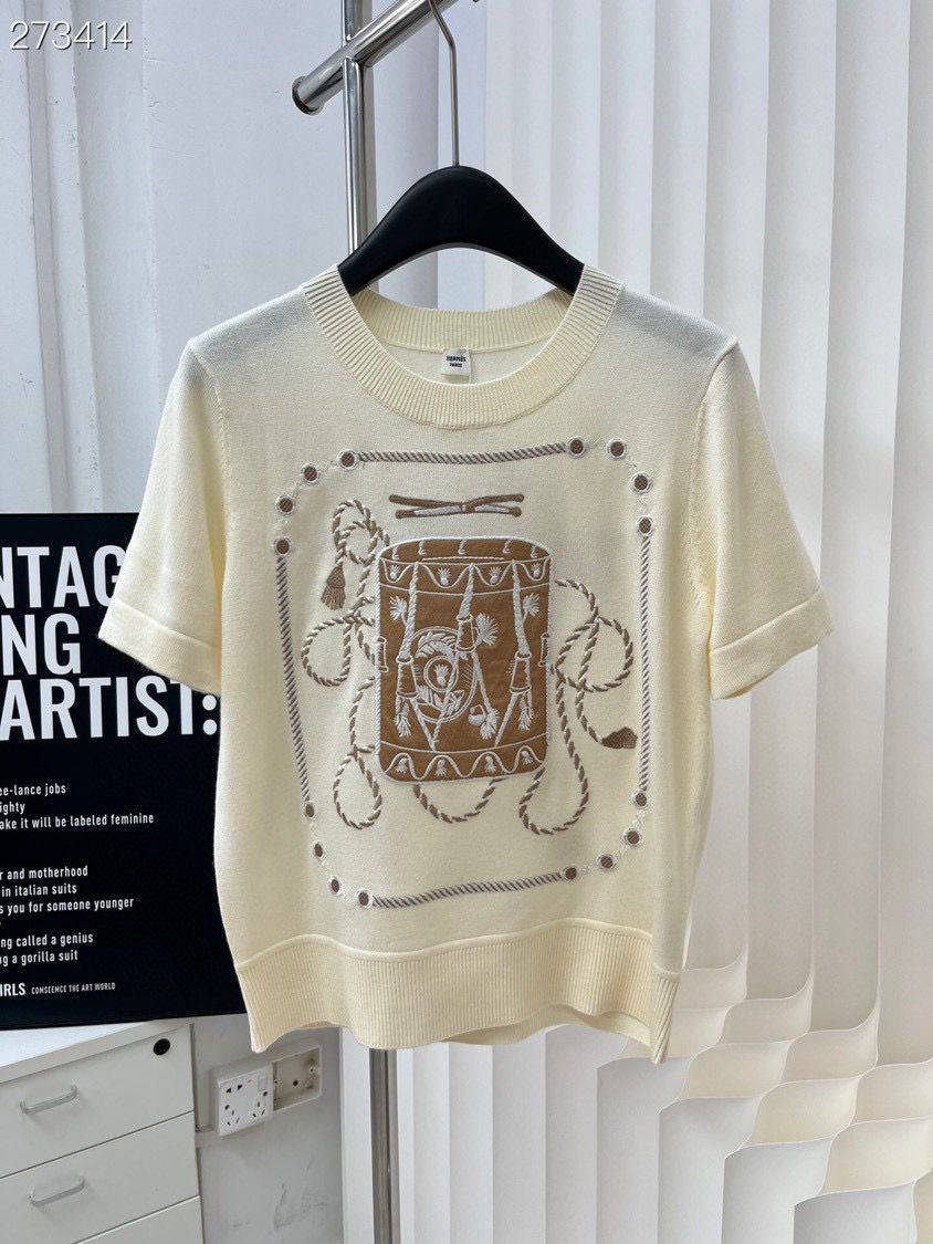 Футболка Hermes LUX-104462 — это воплощение элегантности и стиля. Мягкая кремовая футболка с круглым вырезом и короткими рукавами, украшена эксклюзивным принтом с изображением барабана, создавая уникальный и запоминающийся образ. Идеально подходит для создания изысканных повседневных образов.