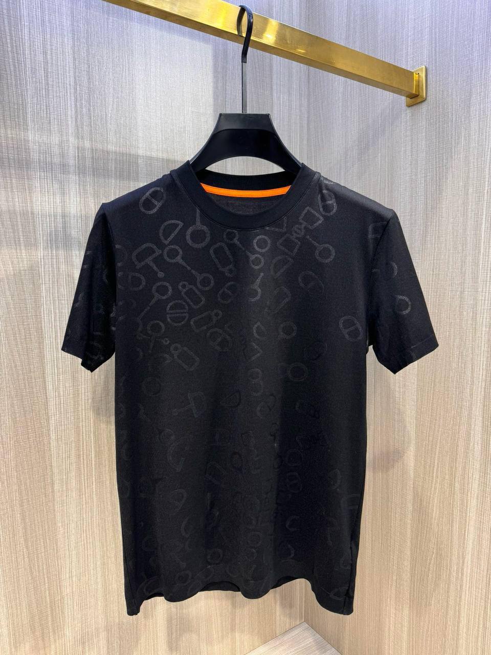 Футболка Hermes LUX-105713 — это образец элегантности и стиля от известного бренда. Футболка выполнена в классическом черном цвете с тисненым узором. Этот предмет гардероба подойдет для различных случаев, от повседневных прогулок до более формальных мероприятий.