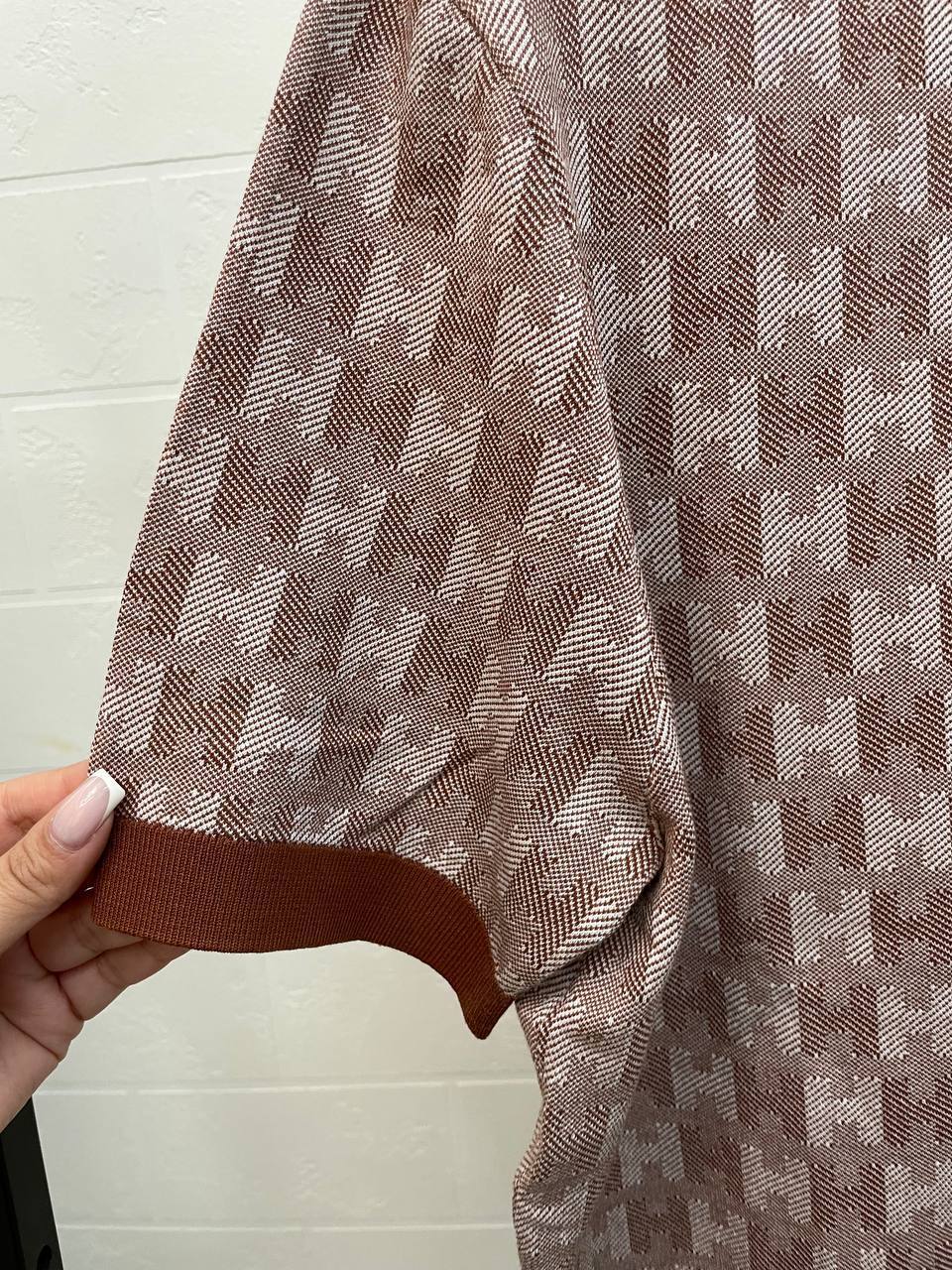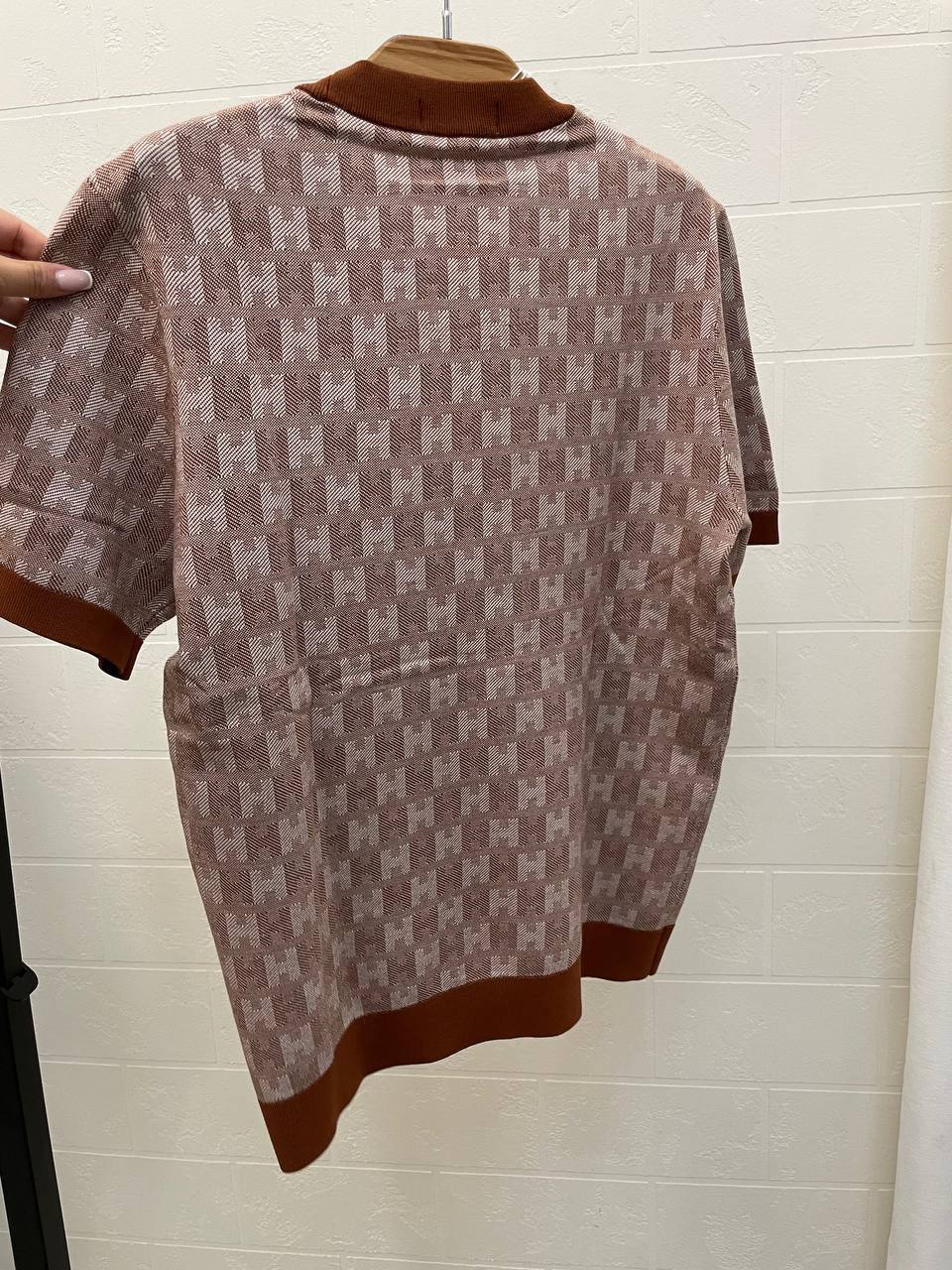Футболка Hermes LUX-109831 представляет собой изысканный предмет гардероба, сочетающий в себе узнаваемый стиль бренда и современный дизайн. Футболка выполнена в классическом стиле с круглым воротом и короткими рукавами. Основным цветом является коричневый с узнаваемым узором бренда.