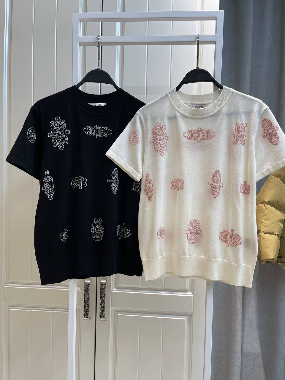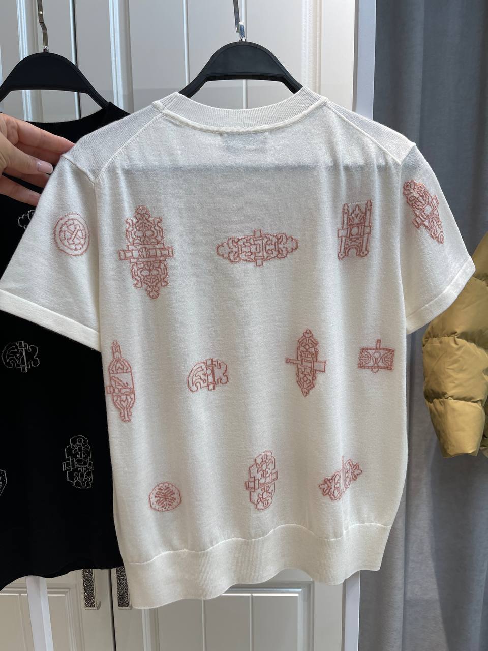 Изысканная футболка с короткими рукавами от Hermes – это элегантный выбор для создания утонченного образа. Уникальный дизайн с декоративными элементами придает ей особый шарм и неповторимость.