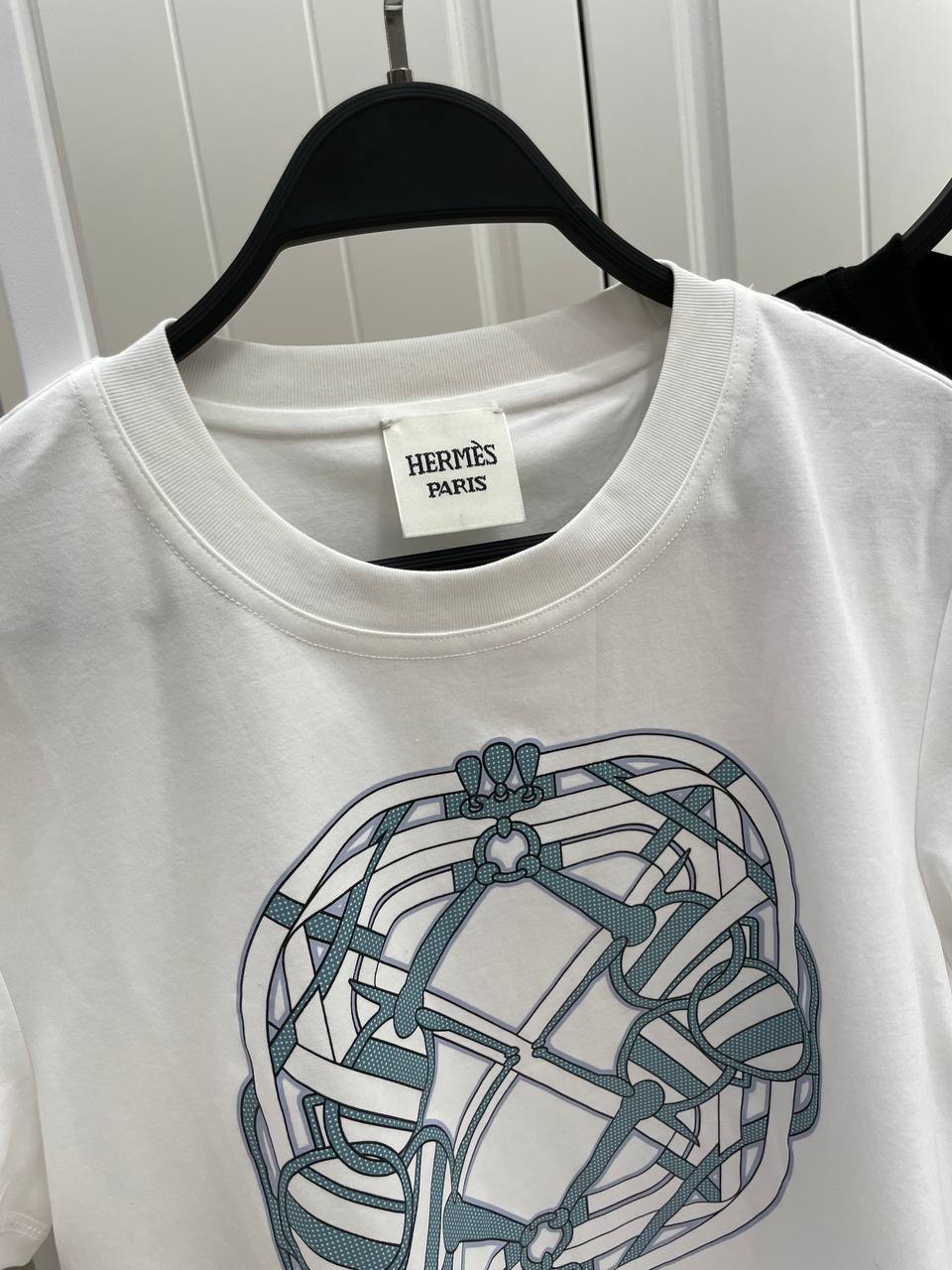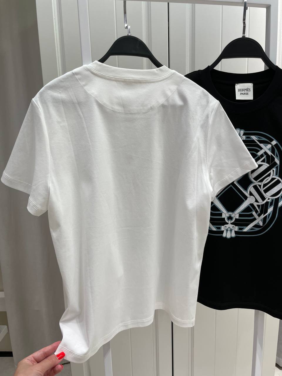 Футболка Hermes LUX-118731 — это классический предмет гардероба от известного бренда. Футболка выполнена в белом цвете с фирменным принтом, что делает ее универсальной и подходящей для различных образов. Она сочетает в себе элегантность и повседневный стиль, идеально подходя для создания стильного и комфортного образа.