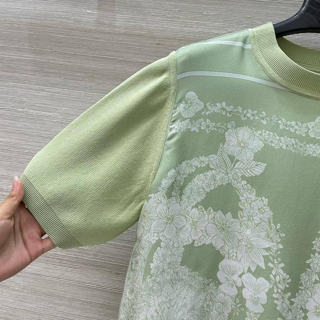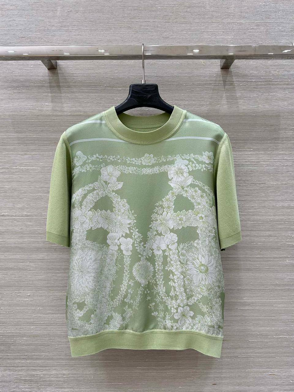 Футболка Hermes LUX-119580 представляет собой стильный предмет гардероба от известного бренда. Она выполнена в нежном салатовом цвете и украшена изысканным цветочным принтом, что придает ей элегантность и женственность. Футболка идеально подойдет для создания повседневных образов, добавляя им нотку изысканности и неповторимости.