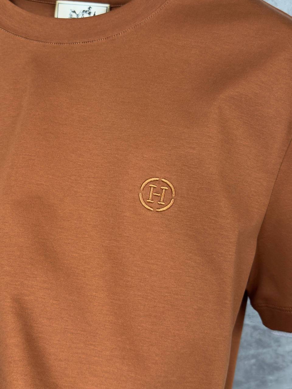 Эта футболка от Hermes - воплощение элегантности и минимализма в повседневном гардеробе. Она сочетает в себе высокое качество исполнения и изысканный дизайн.