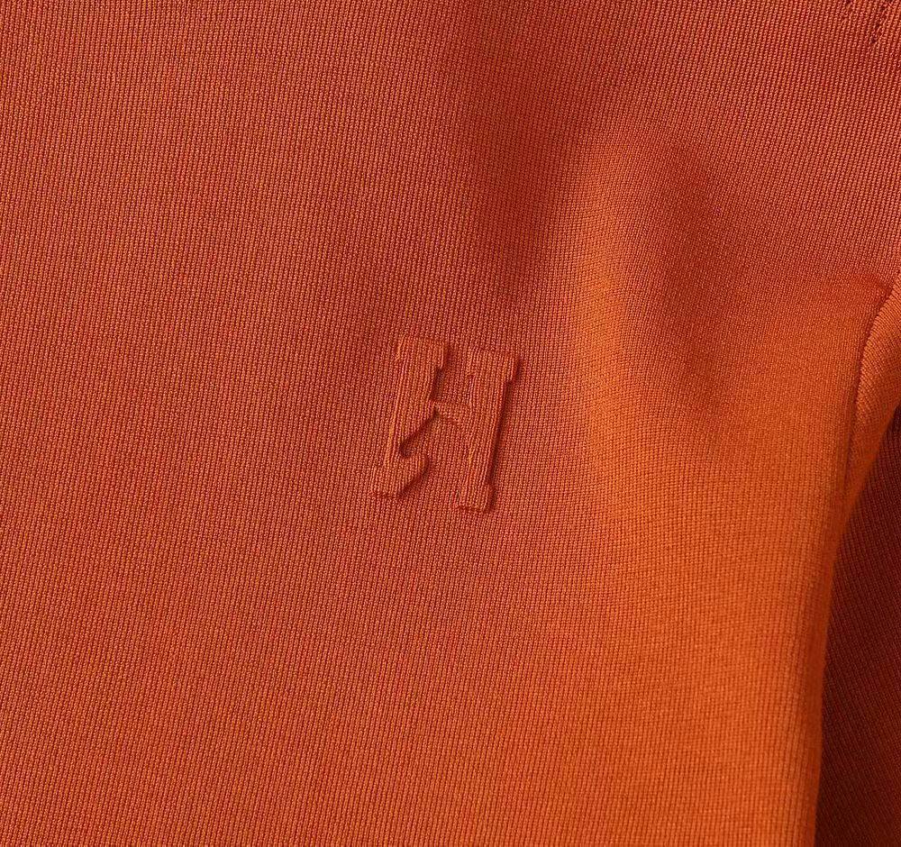Футболка Hermes LUX-131804 - это стильный и комфортный элемент гардероба. Она выполнена в ярком оранжевом цвете и украшена логотипом бренда.