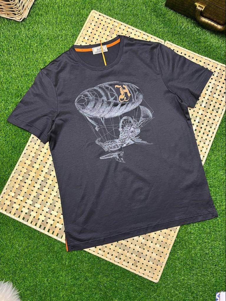 Футболка Hermes LUX-71914 - это стильная мужская футболка классического кроя, представленная в тёмно-синем цвете. Дизайн футболки украшен изображением аэростата, что придает ей оригинальность. Эта футболка идеально подходит для создания повседневных образов.