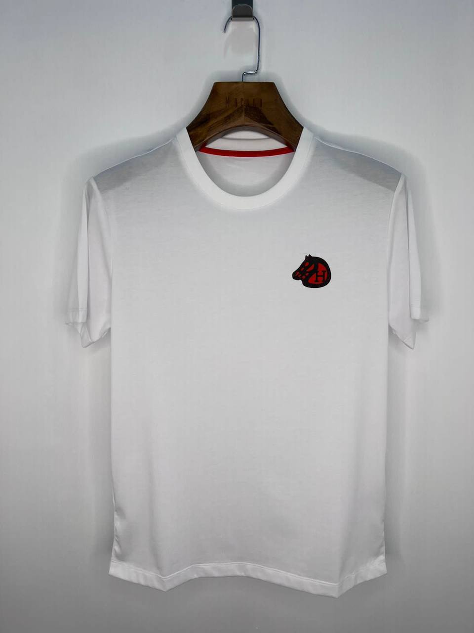 Футболка Hermes LUX-71924 представляет собой классическую модель белого цвета с круглым вырезом и короткими рукавами. На груди расположен небольшой логотип. Эта футболка может быть использована как повседневная одежда.
