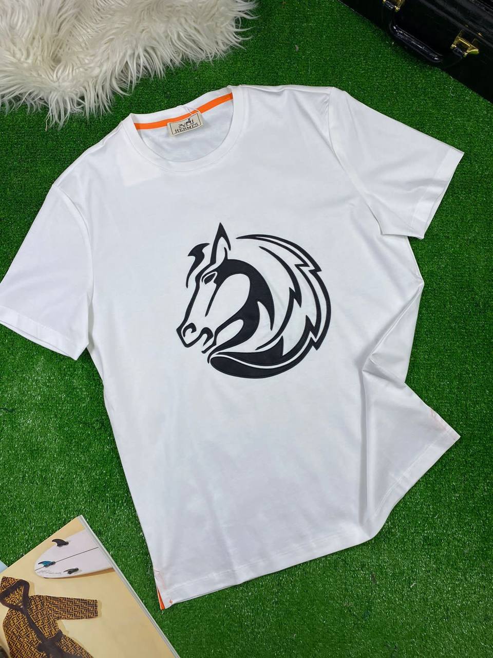 Футболка мужская Hermes LUX-65896 — это стильная и комфортная вещь для современного мужчины. Белый цвет футболки идеально сочетается с контрастным черным принтом в виде головы лошади, что придает ей элегантность и узнаваемость. Классический крой и качественные материалы делают эту футболку универсальным элементом гардероба, подходящим как для повседневной носки, так и для создания более изысканных образов.