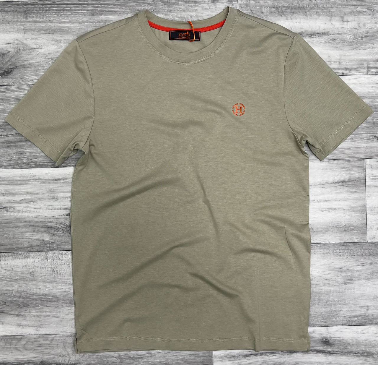 Футболка мужская Hermes LUX-102037 — это стильная футболка от известного бренда. Она выполнена в классическом стиле, имеет круглый вырез и короткие рукава. Основной цвет футболки — светло-оливковый.