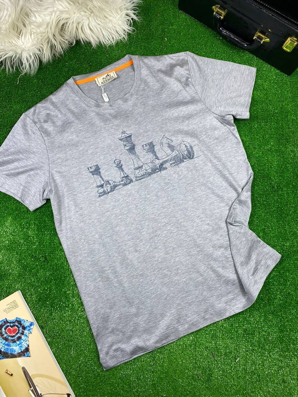 Футболка мужская Hermes LUX-65913 представляет собой стильный элемент гардероба, выполненный в классическом сером цвете. Дизайн футболки дополнен оригинальным принтом в виде шахматных фигур, что придает ей индивидуальность и элегантность. Эта футболка идеально подойдет для создания расслабленных, но в то же время утонченных образов.