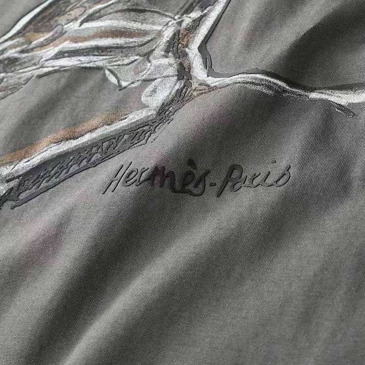 Футболка мужская Hermes LUX-84546 — это элегантный предмет гардероба от известного бренда. Серая футболка выполнена в классическом стиле с круглым вырезом и короткими рукавами. Главной особенностью является изысканный принт с изображением лошади, придающий изделию неповторимый шарм.