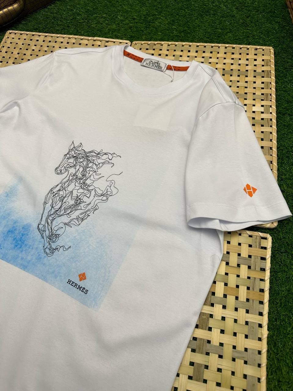 Мужская футболка Hermes LUX-85858 — это воплощение изысканного стиля и комфорта. Белая футболка с художественным принтом, изображающим лошадь, станет отличным выбором для создания повседневных образов. Этот предмет гардероба сочетает в себе элегантность и практичность.