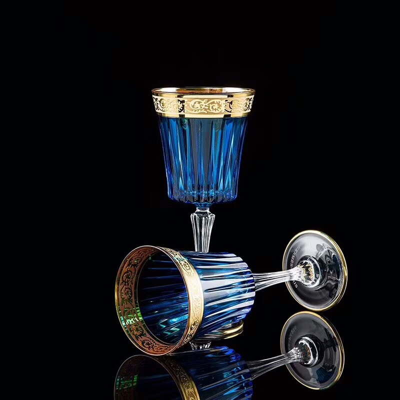 Фужеры Hermes LUX-21514 – это элегантные бокалы, выполненные в классическом стиле. Синее стекло с изысканным золотым узором по краю чаши и тонкой ножкой придают им роскошный вид. Они идеально подойдут для сервировки стола на торжественные мероприятия, добавляя утонченности любому событию.