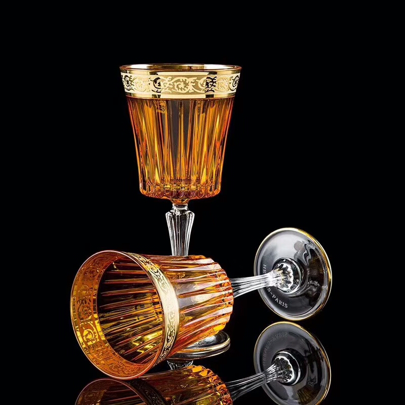 Эти изысканные фужеры Hermes LUX-21515, выполненные в классическом стиле, станут роскошным дополнением к вашей сервировке. Их насыщенный янтарный цвет и элегантный золотой ободок с узором придают им неповторимый шарм. Фужеры обладают изящным дизайном и идеально подойдут для подачи различных напитков, подчеркивая их вкус и аромат.