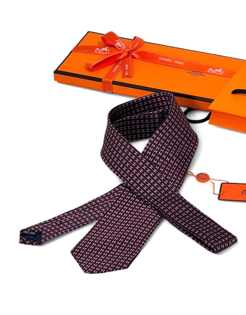 Галстук Hermes LUX-119229 — это стильный аксессуар для делового гардероба. Бордовый галстук с повторяющимся узором из букв выглядит элегантно и подходит для различных мероприятий. Он дополнит как классический костюм, так и более формальный образ.