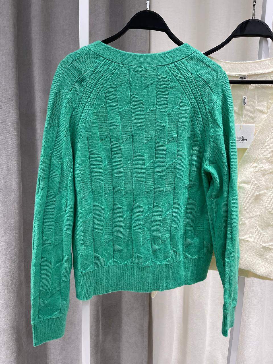 На изображении представлен стильный кардиган от Hermes. Этот яркий элемент гардероба станет отличным дополнением к вашему образу.