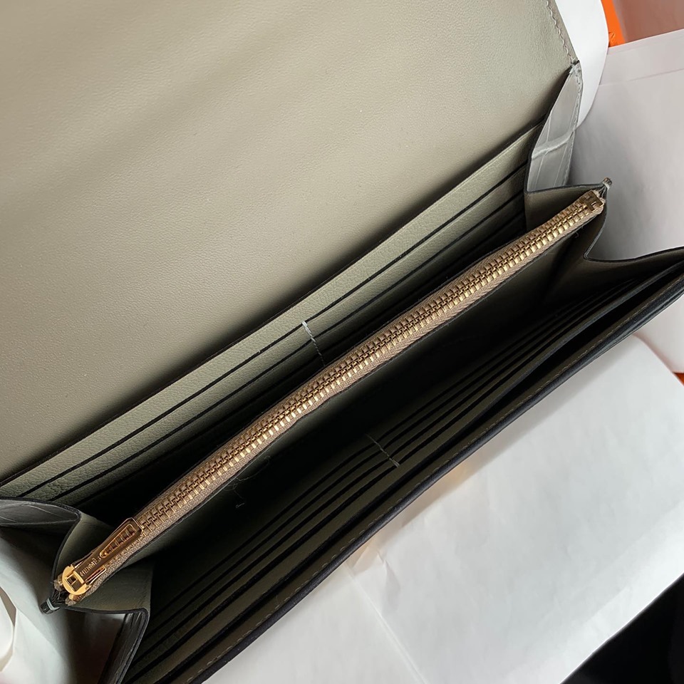 Клатч Hermes LUX-14863 — это элегантный аксессуар, выполненный в классическом стиле, который подчеркнет изысканность вашего образа. Серый цвет и текстура, имитирующая кожу крокодила, придают ему роскошный вид. Этот клатч идеально подойдет для особых случаев и вечерних выходов.