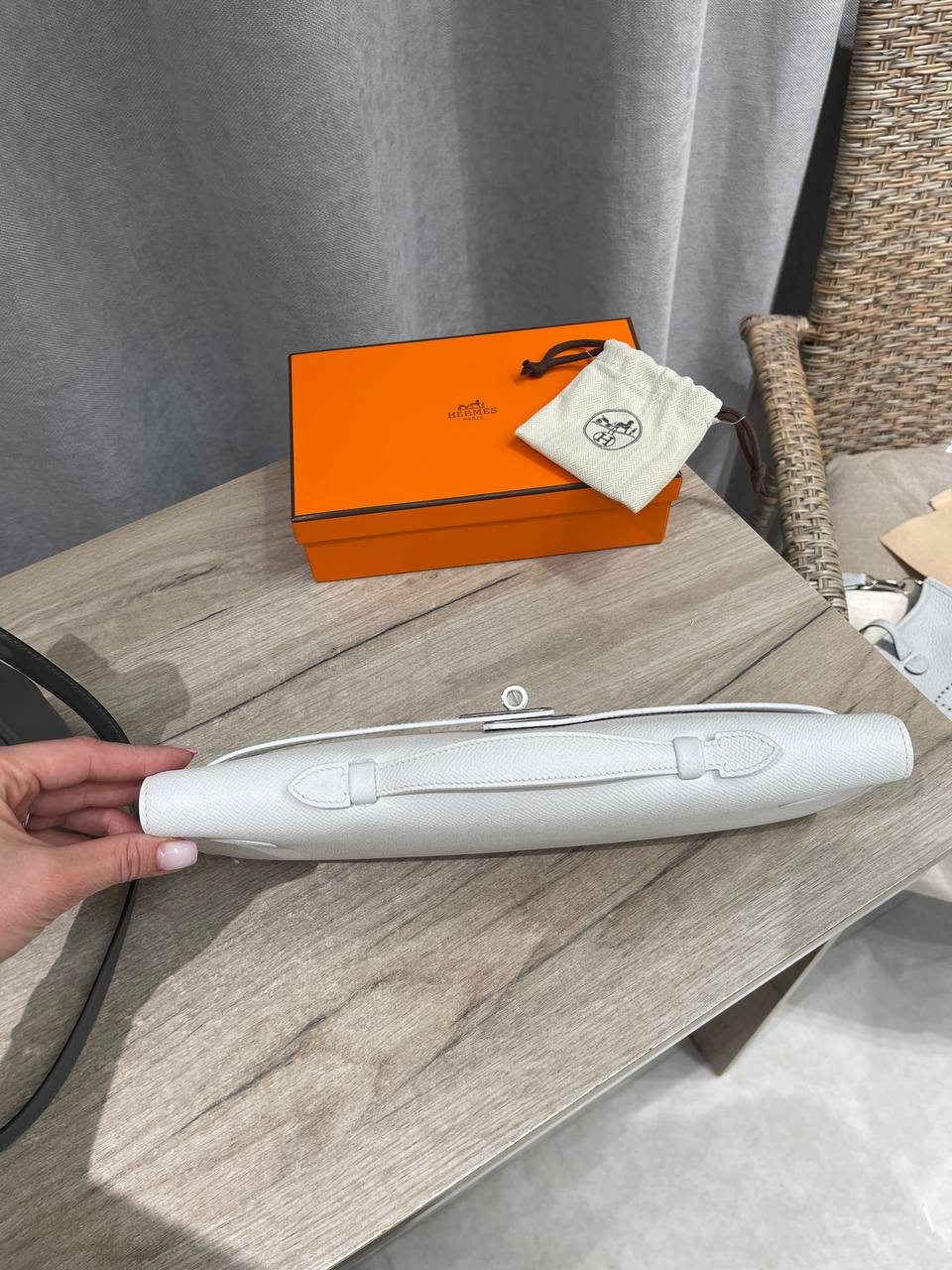 Клатч Kelly Cut, Epsom Hermes LUX-118180 — это элегантный аксессуар от известного бренда. Клатч выполнен в классическом стиле, имеет белый цвет с текстурой, делая его подходящим для вечерних выходов и светских мероприятий.