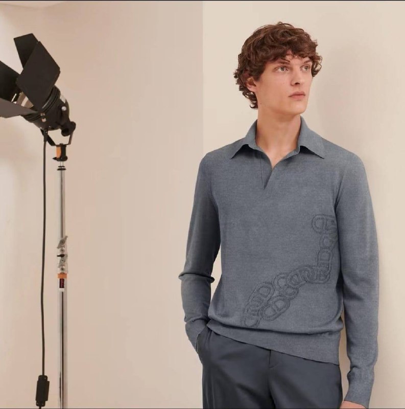 Мужская кофта Hermes LUX-55555 представляет собой стильный и элегантный предмет гардероба, выполненный в современном дизайне. Эта модель сочетает в себе классический крой поло с оригинальным декором в виде переплетающихся звеньев, добавляя образу утонченности. Кофта идеально подходит для создания как повседневных, так и более формальных образов, подчеркивая безупречный вкус своего обладателя.