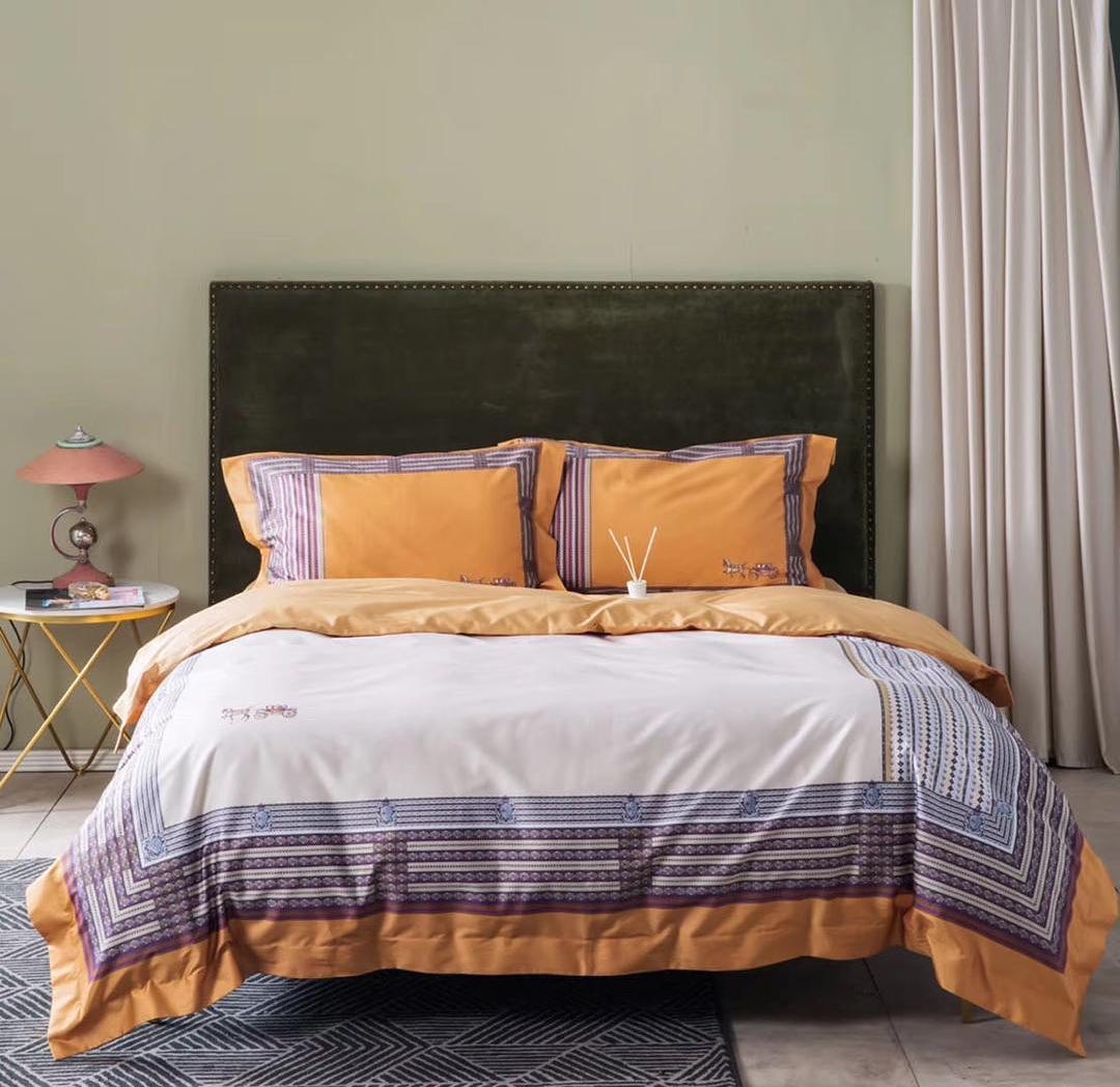Комплект постельного белья Hermes LUX-41216 представляет собой элегантное и стильное решение для вашей спальни. Дизайн сочетает в себе классические мотивы и современные цветовые решения, создавая атмосферу уюта и роскоши. Белое полотно с яркой оранжевой каймой и геометрическим принтом в фиолетовых и синих тонах, а также контрастные наволочки в полоску, делают этот комплект по-настоящему уникальным.