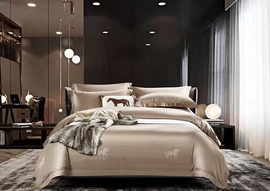 Комплект постельного белья Hermes LUX-42952 выполнен в элегантном дизайне, гармонично дополняющем спальню в классическом или современном стиле. Благородный бежевый оттенок и изысканный принт в виде лошадей создают атмосферу роскоши и уюта. Комплект обеспечит комфортный и здоровый сон, радуя своим видом долгие годы.