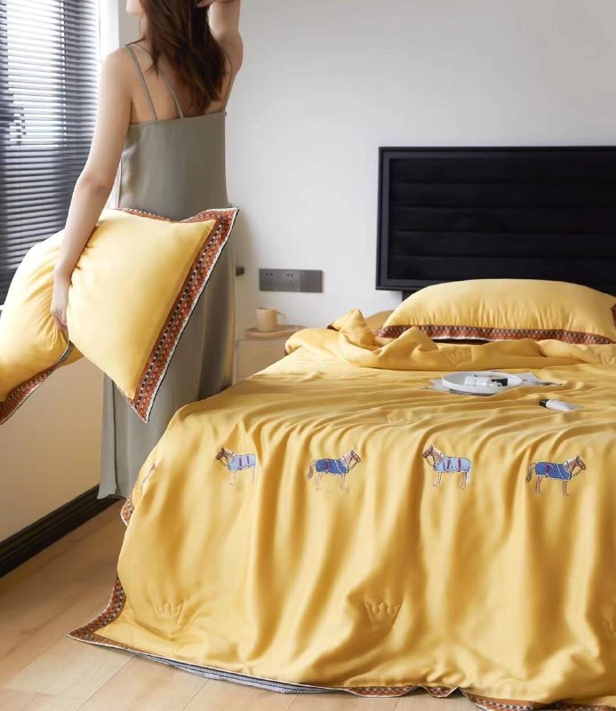 Комплект постельного белья Hermes LUX-49420 — это элегантное решение для вашей спальни, выполненное в стиле, напоминающем роскошные дизайны бренда Hermes. Яркий желтый цвет в сочетании с изысканной вышивкой в виде лошадей и декоративной каймой придает изделию изысканный вид. Этот комплект идеально подходит для создания уютной и стильной атмосферы в вашей спальне.
