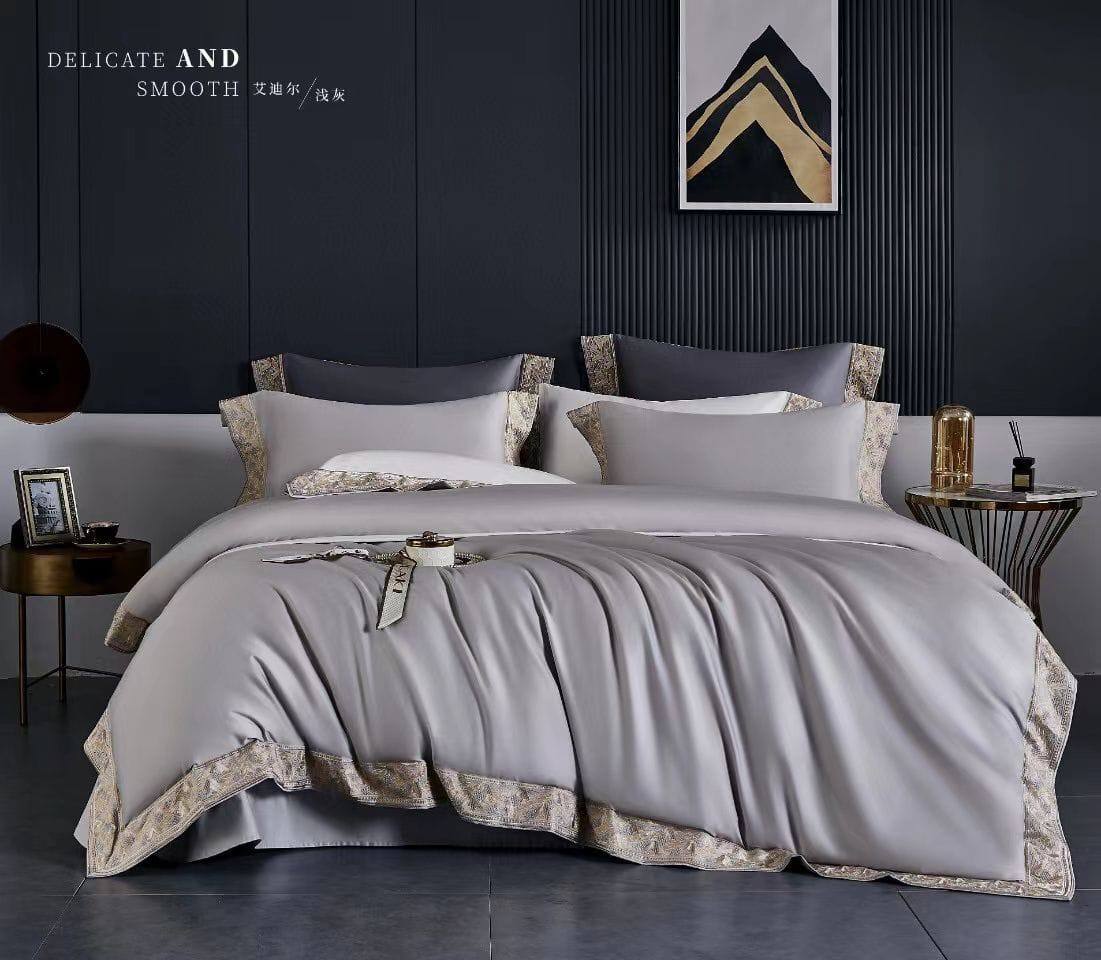 Комплект постельного белья Hermes LUX-78073 представляет собой изысканный текстиль в серых тонах с декоративными элементами. Комплект имеет элегантный вид и подойдет для создания атмосферы роскоши в спальне.