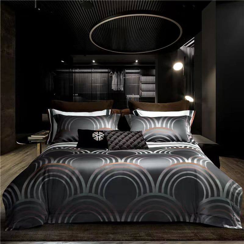 Комплект постельного белья Hermes LUX-94461 — изысканный предмет интерьера для спальни. Комплект выполнен в элегантном стиле, сочетает в себе серые и серебристые оттенки с геометрическим узором. Предназначен для создания атмосферы роскоши и комфорта.