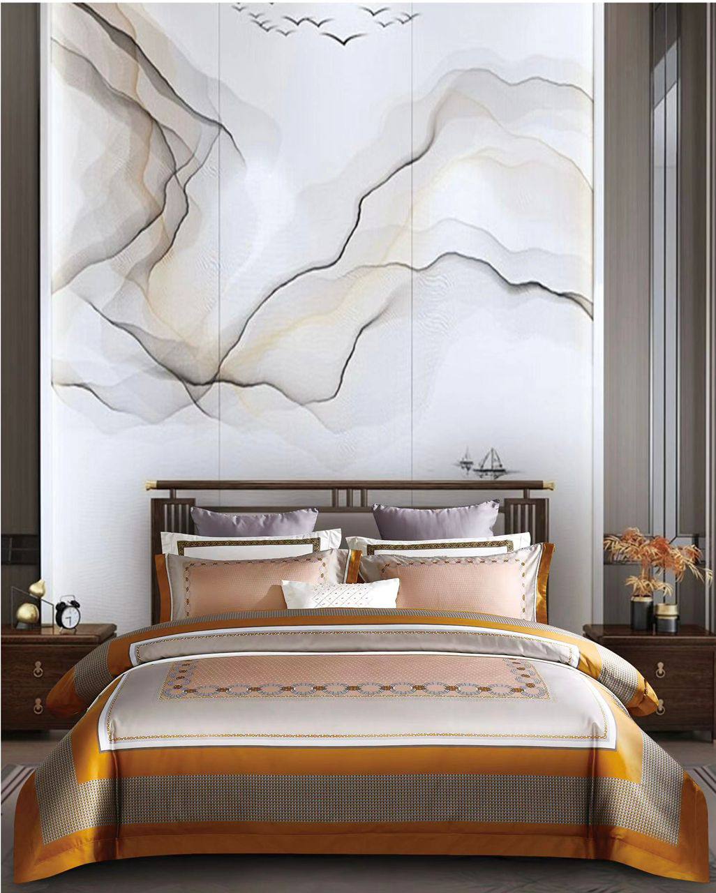 Комплект постельного белья KING Hermes LUX-71159 — это изысканный комплект постельного белья, который призван создать атмосферу роскоши и комфорта в вашей спальне. Комплект выполнен в теплых тонах с акцентом на золотистые и коричневые оттенки, что придает ему элегантный вид. Предназначен для создания уютного и стильного интерьера.