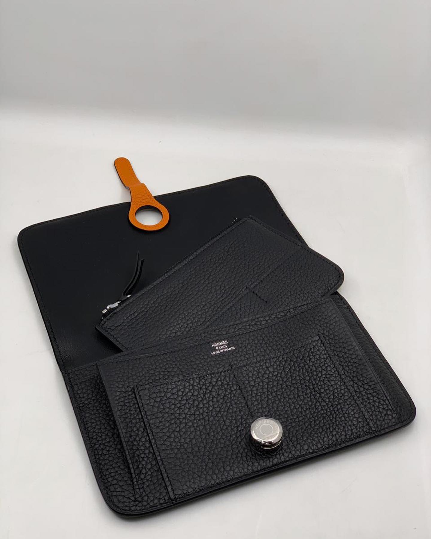 Элегантный кошелёк Hermes LUX-40066, выполненный в классическом чёрном цвете, станет идеальным аксессуаром для стильной женщины. Этот компактный, но вместительный кошелёк сочетает в себе изысканность бренда Hermes и практичность современного дизайна. Его текстурированная поверхность и контрастная оранжевая деталь на застёжке придают ему неповторимый шарм.