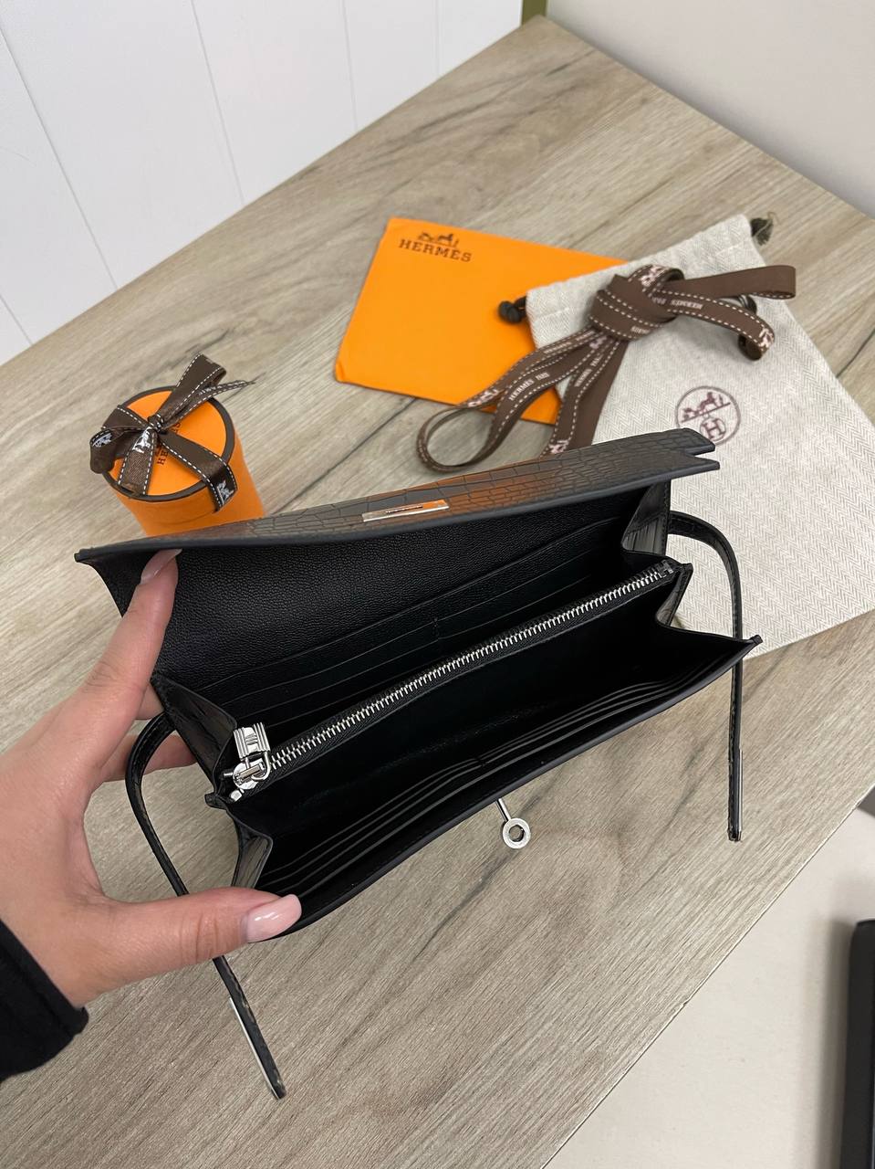 Кошелёк Crocodile Niloticus Mat Hermes LUX-83496 - это воплощение элегантности и роскоши. Чёрный кошелёк с тиснением под крокодиловую кожу, обладает строгим дизайном и непревзойденным стилем. Этот аксессуар станет идеальным дополнением к любому образу, подчеркивая статус и изысканный вкус своего владельца.