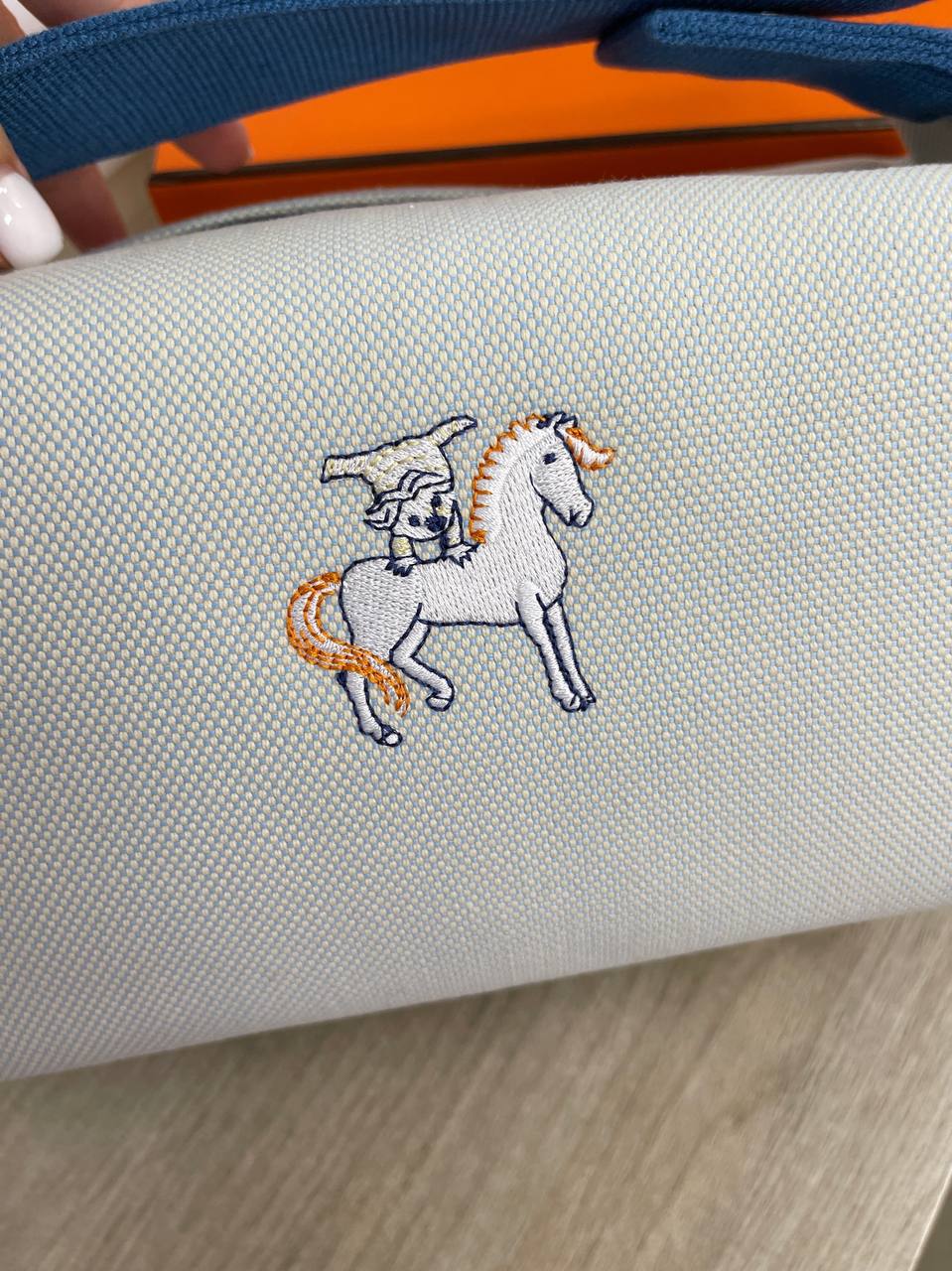 Косметичка Hermes LUX-92310 - это элегантный аксессуар для хранения косметики. Косметичка выполнена в светлом оттенке с контрастными деталями. На лицевой стороне имеется вышивка с изображением лошади.