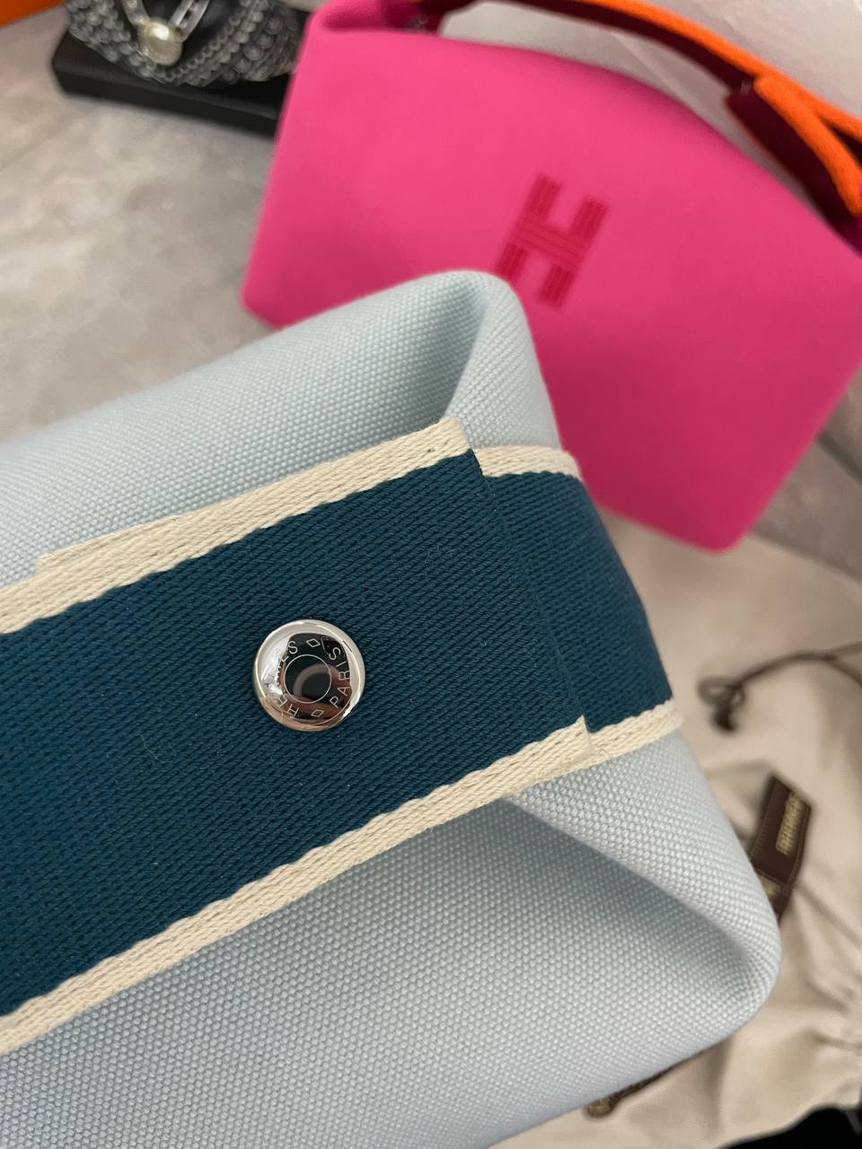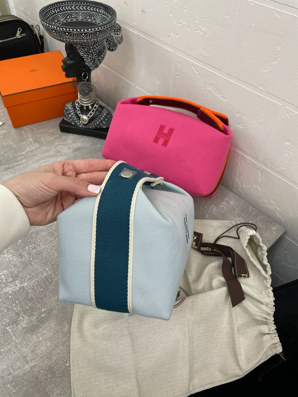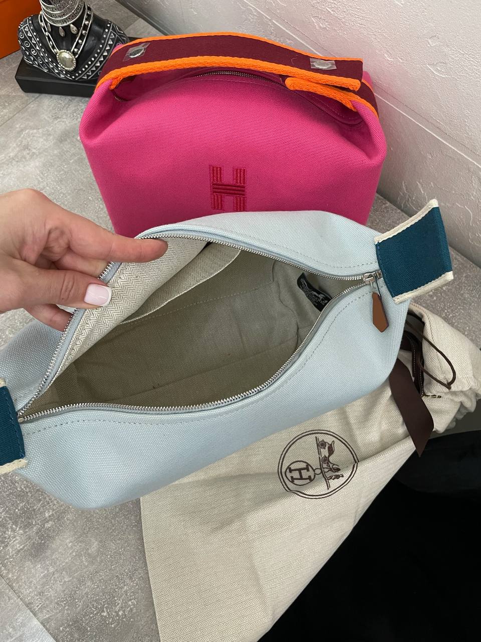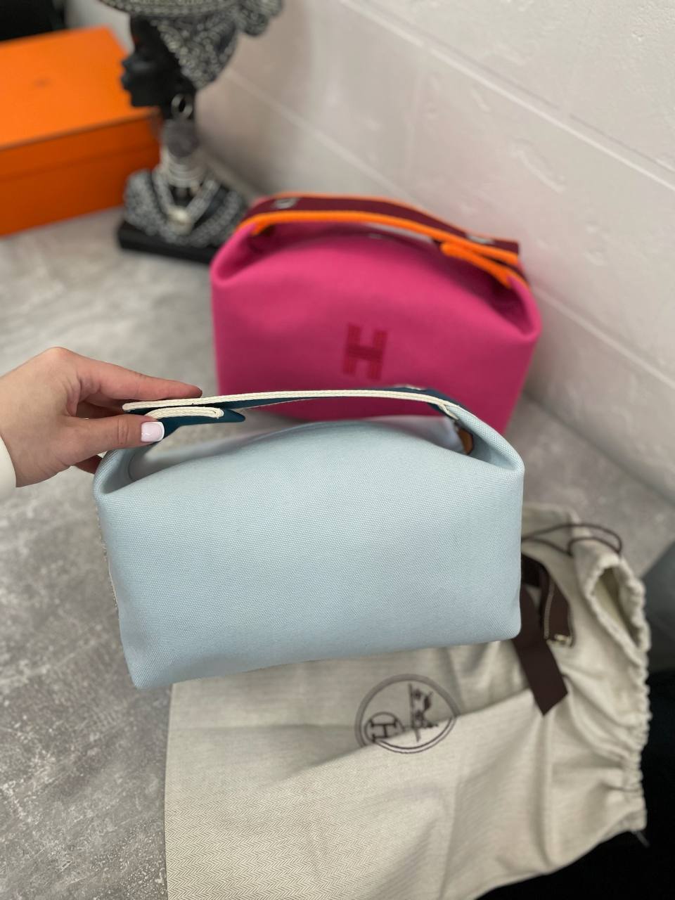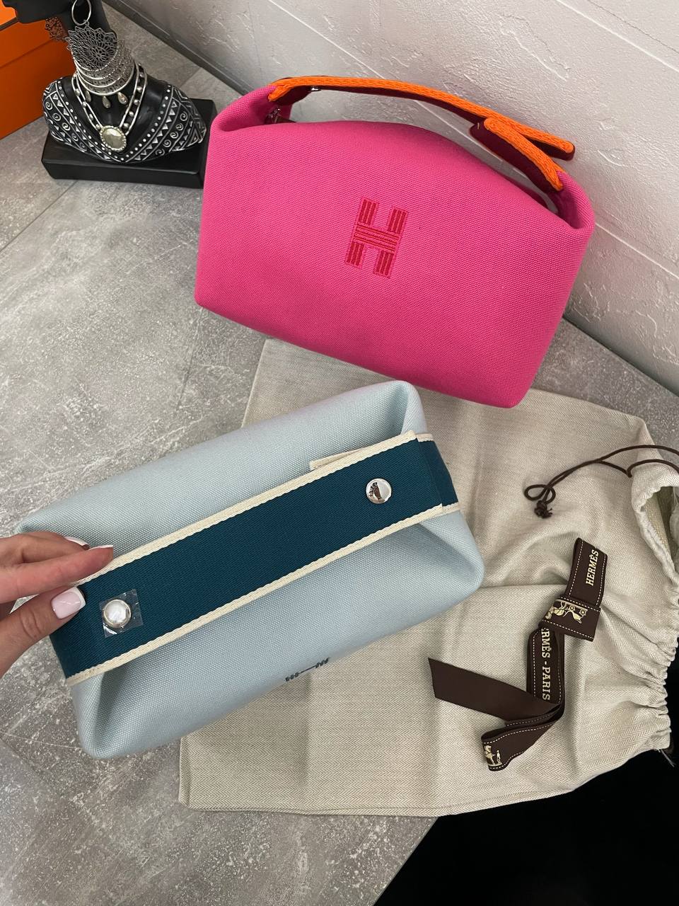 Косметичка Hermes LUX-104634 — стильный аксессуар, который подчеркнет ваш безупречный вкус. Эта косметичка нежно-голубого цвета, с фирменным логотипом бренда, отлично подойдет для хранения косметики и других мелочей. Косметичка выполнена в современном стиле, который идеально дополнит любой образ.