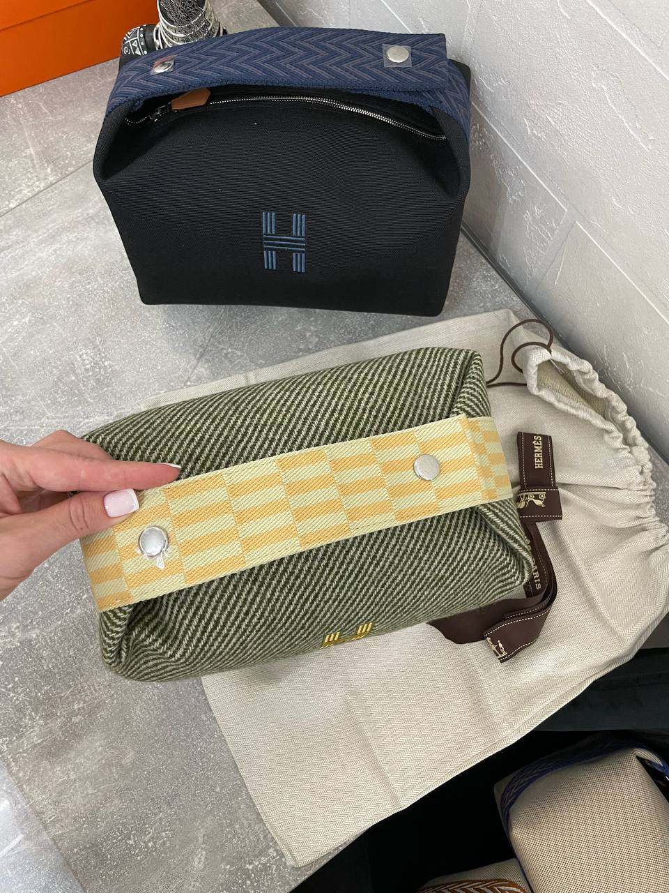 Косметичка Hermes LUX-104638 – это стильный аксессуар от Hermes, выполненный в современном стиле. Косметичка представляет собой прямоугольную форму, выполнена в оливковом цвете с фирменным логотипом бренда. Идеально подходит для хранения косметики и других мелких предметов.