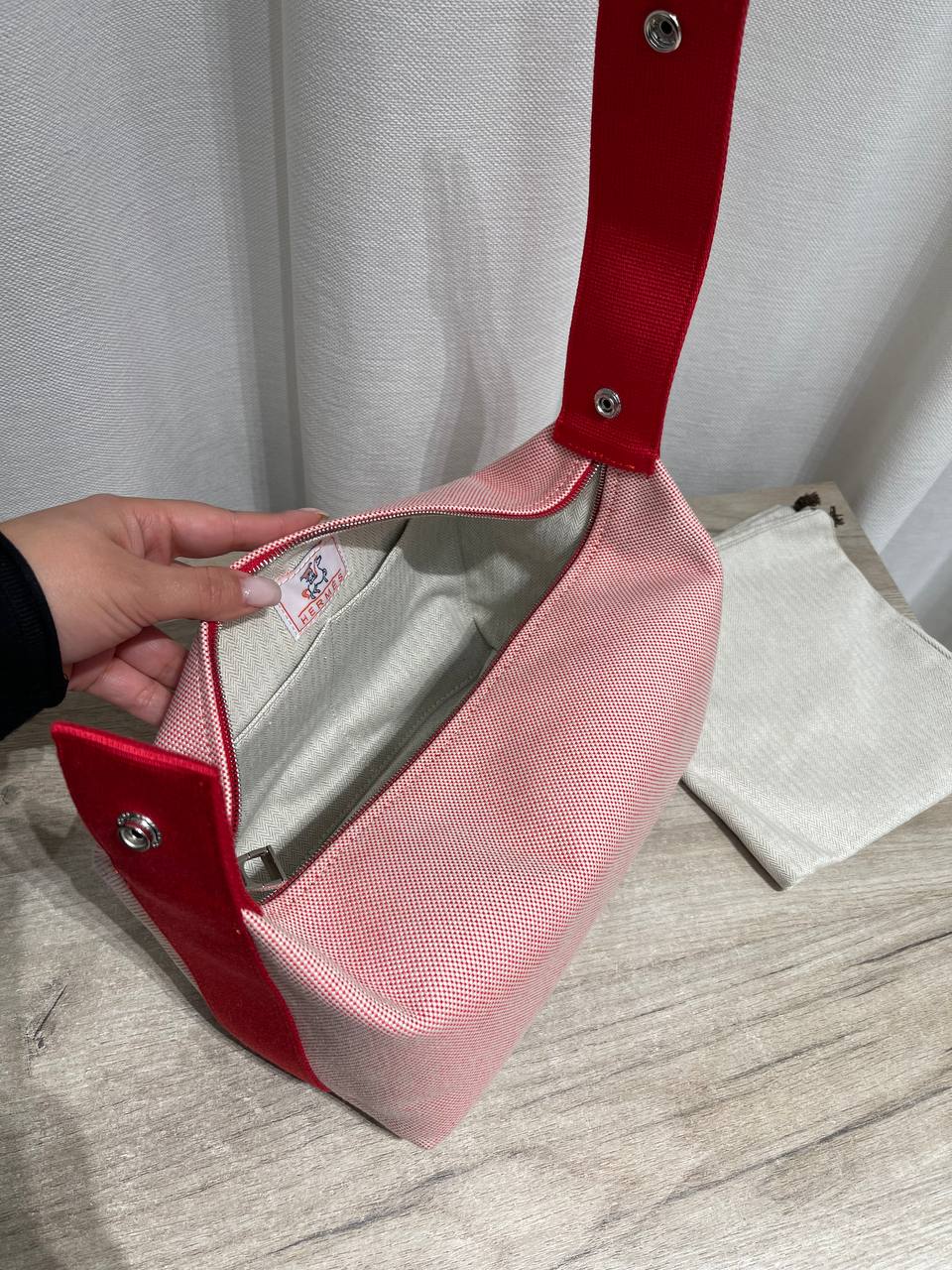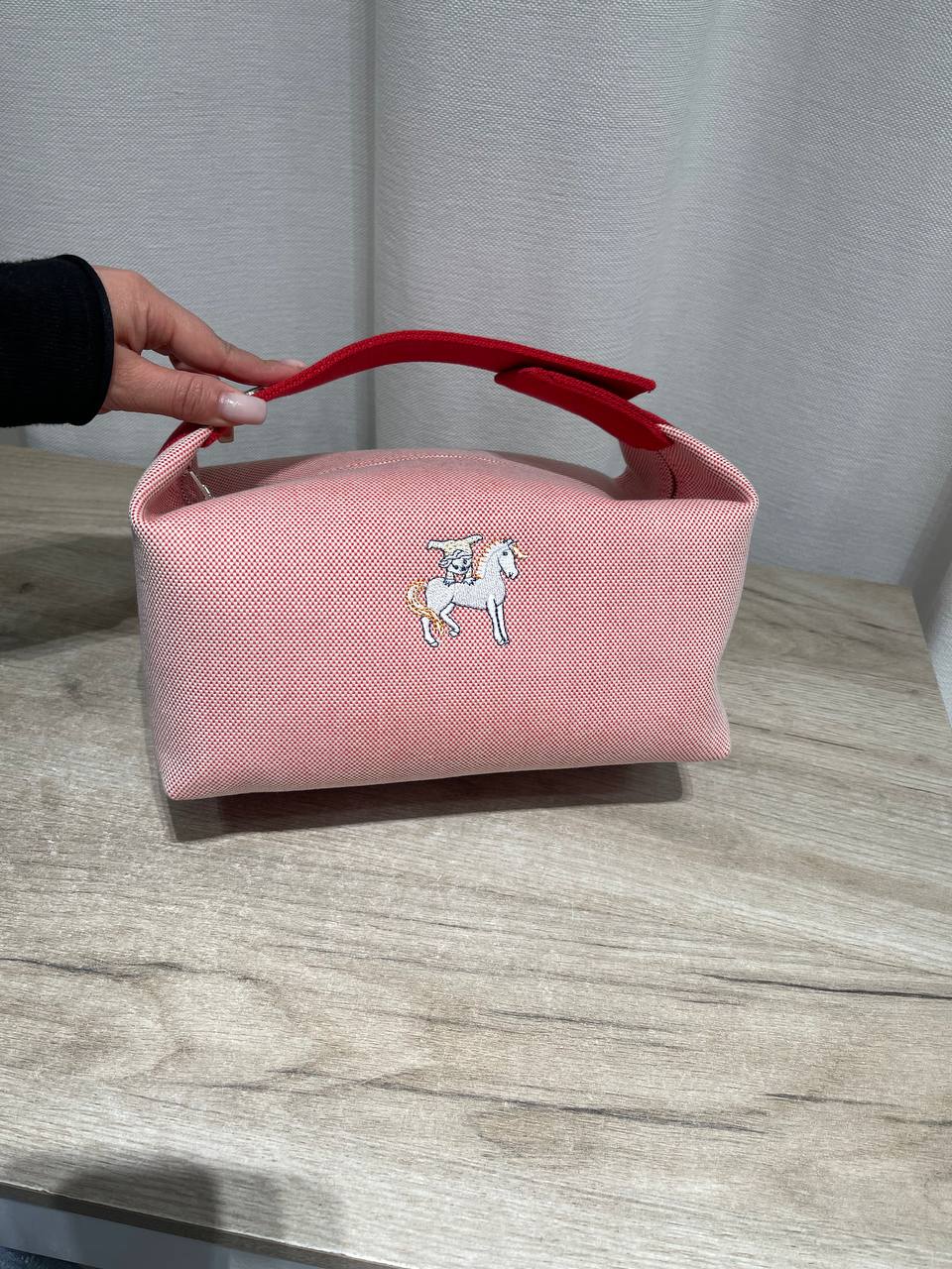 Косметичка Bride-a-Brac от Hermes - стильный и практичный аксессуар. Она выполнена в нежном розовом оттенке с оригинальной вышивкой. Эта косметичка идеально подходит для хранения и организации ваших косметических средств.