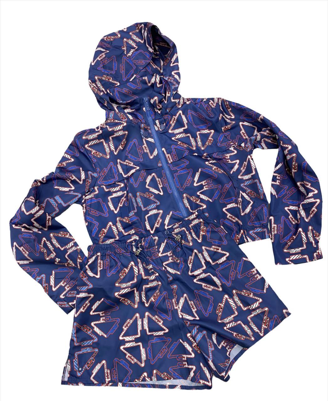 Костюм Hermes LUX-70422 - это стильный комплект, включающий куртку с капюшоном и шорты. Комплект выполнен в ярком синем цвете с геометрическим принтом, подходит для активного отдыха и повседневной носки. Ткань изделия обеспечивает комфорт и свободу движений.