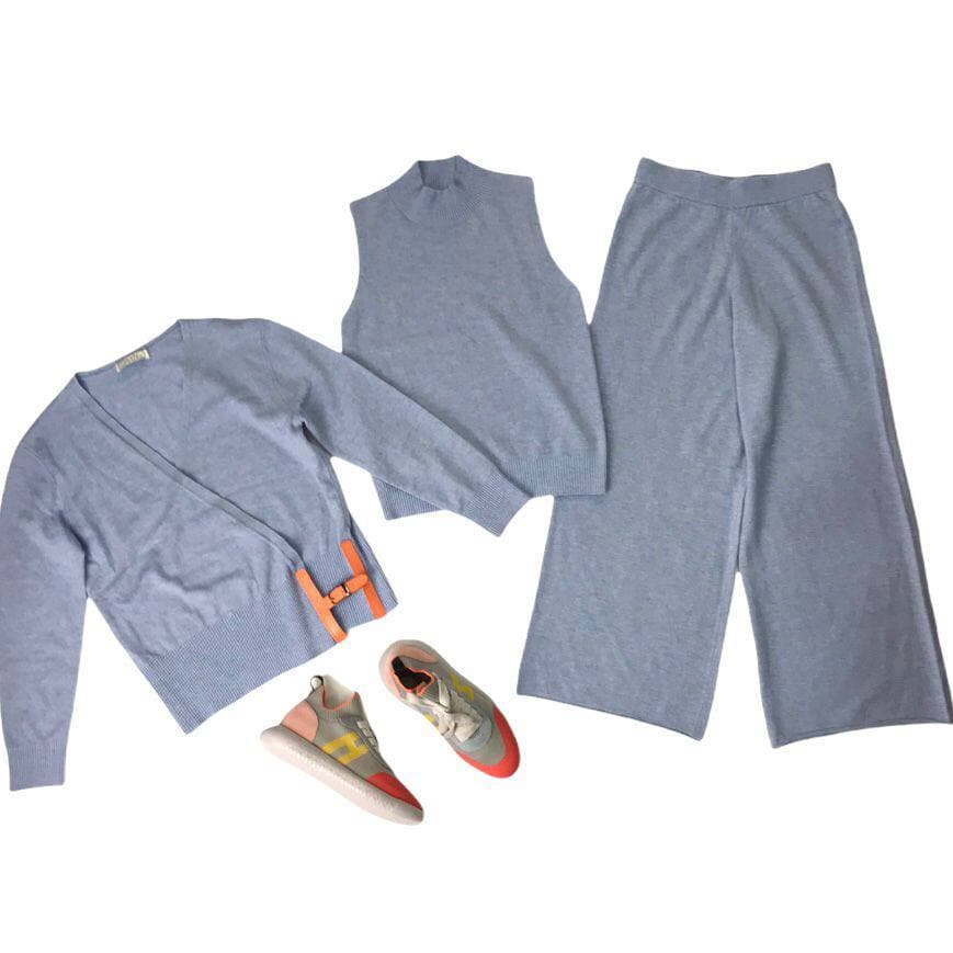 Представленный женский костюм Hermes LUX-59221 выполнен в спокойном голубом цвете и предлагает элегантный, но в то же время расслабленный образ. Комплект включает в себя кардиган, безрукавку и брюки, что делает его универсальным решением для различных случаев. Акцент на минимализм и лаконичный крой подчеркивает премиальное качество и утонченный стиль.