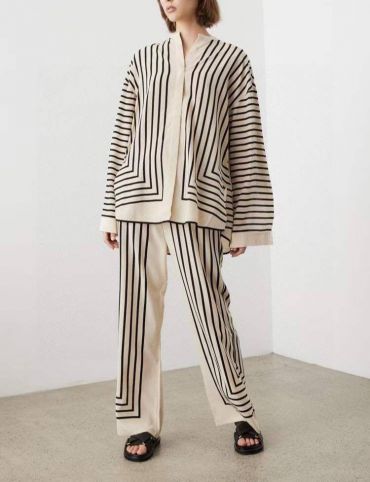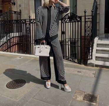 Костюм женский Hermes LUX-87470 - это элегантный ансамбль, который сочетает в себе стиль и комфорт. Костюм выполнен в черно-белой гамме с абстрактным узором, что придает ему современный вид. Этот костюм идеально подходит для создания стильного образа в различных ситуациях.