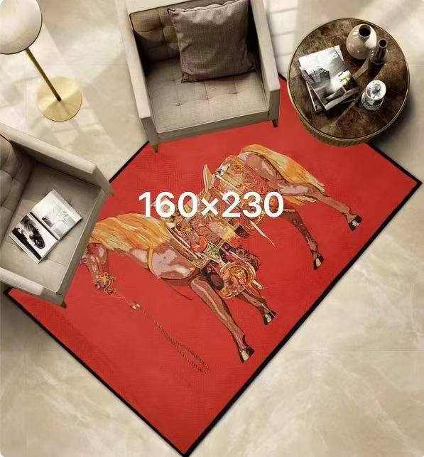 Ковер Hermes – стильный аксессуар для дома, выполненный в ярком дизайне. Изображение двух лошадей на красном фоне привносит роскошь и изысканность в интерьер.