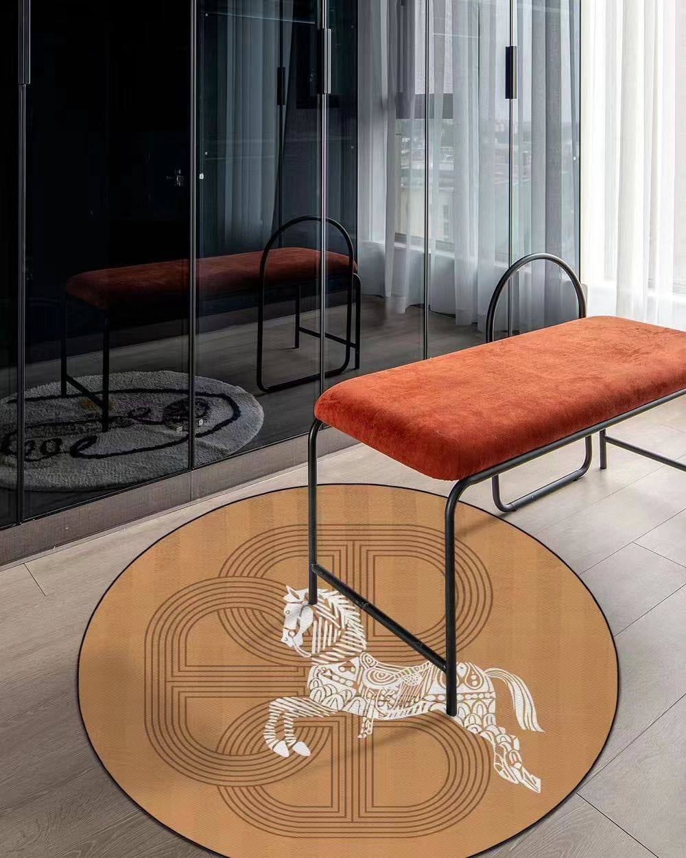 Ковер диаметром 150 см Hermes LUX-82920 представляет собой стильный предмет интерьера с круглым дизайном и изображением лошади. Ковер выполнен в теплых тонах и может стать ярким акцентом в любом пространстве. Он отлично подойдет для гостиной, спальни или прихожей, добавляя изысканность и комфорт.