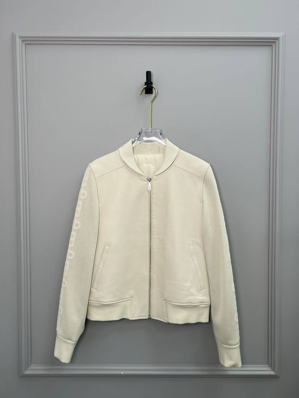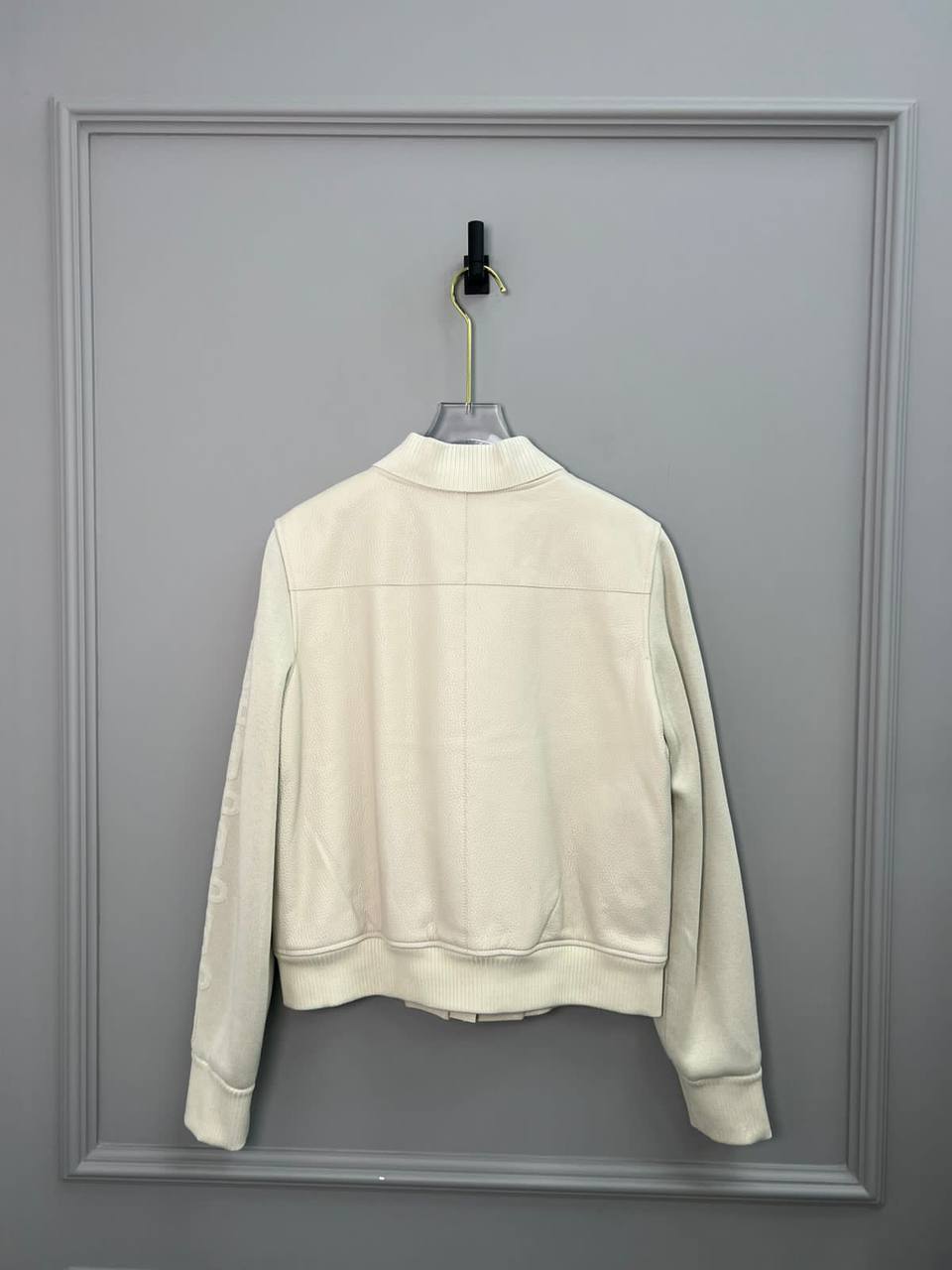Кожаная куртка Hermes LUX-101449 представляет собой элегантную модель в стиле бомбер, выполненную в кремовом цвете. Куртка имеет сдержанный дизайн, дополненный тонкой текстурой кожи, что делает ее универсальной для различных образов. Эта куртка идеально подойдет для повседневной носки, подчеркивая безупречный вкус владельца.