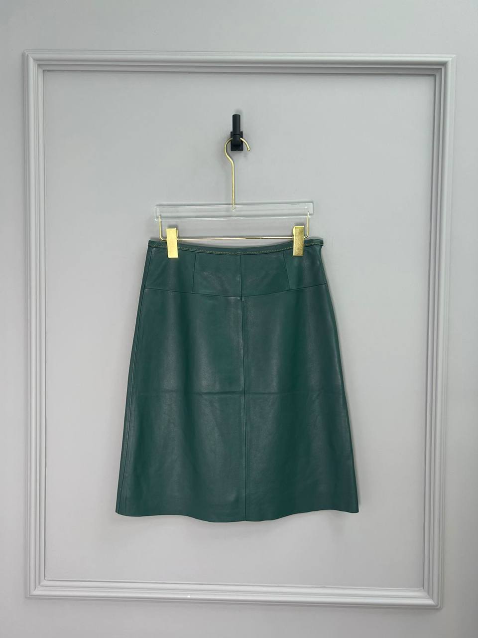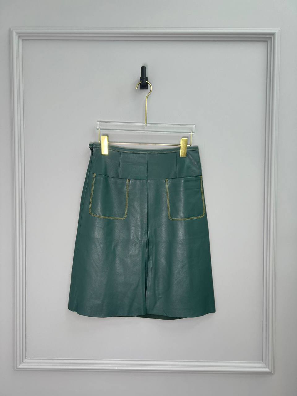 Кожаная юбка Hermes LUX-97824 - это стильный предмет гардероба. Юбка выполнена в классическом прямом крое, представлена в глубоком зеленом цвете. Ее можно использовать для создания элегантных и повседневных образов.