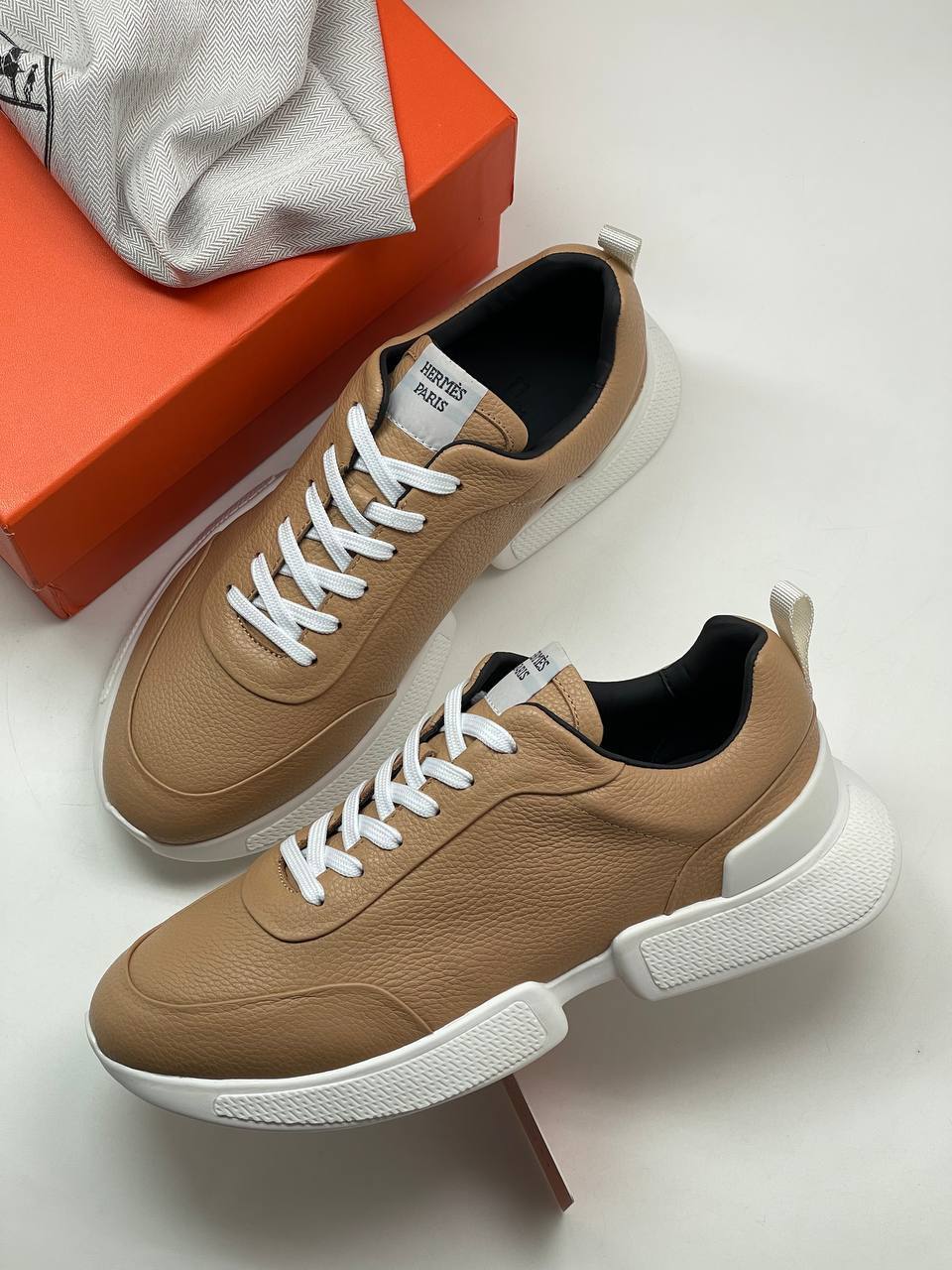 Кроссовки Hermes LUX-72522 — это стильные мужские кроссовки, выполненные в классическом стиле. Основной цвет — бежевый, с белой подошвой. Отлично подойдут для повседневной носки, дополняя любой образ.