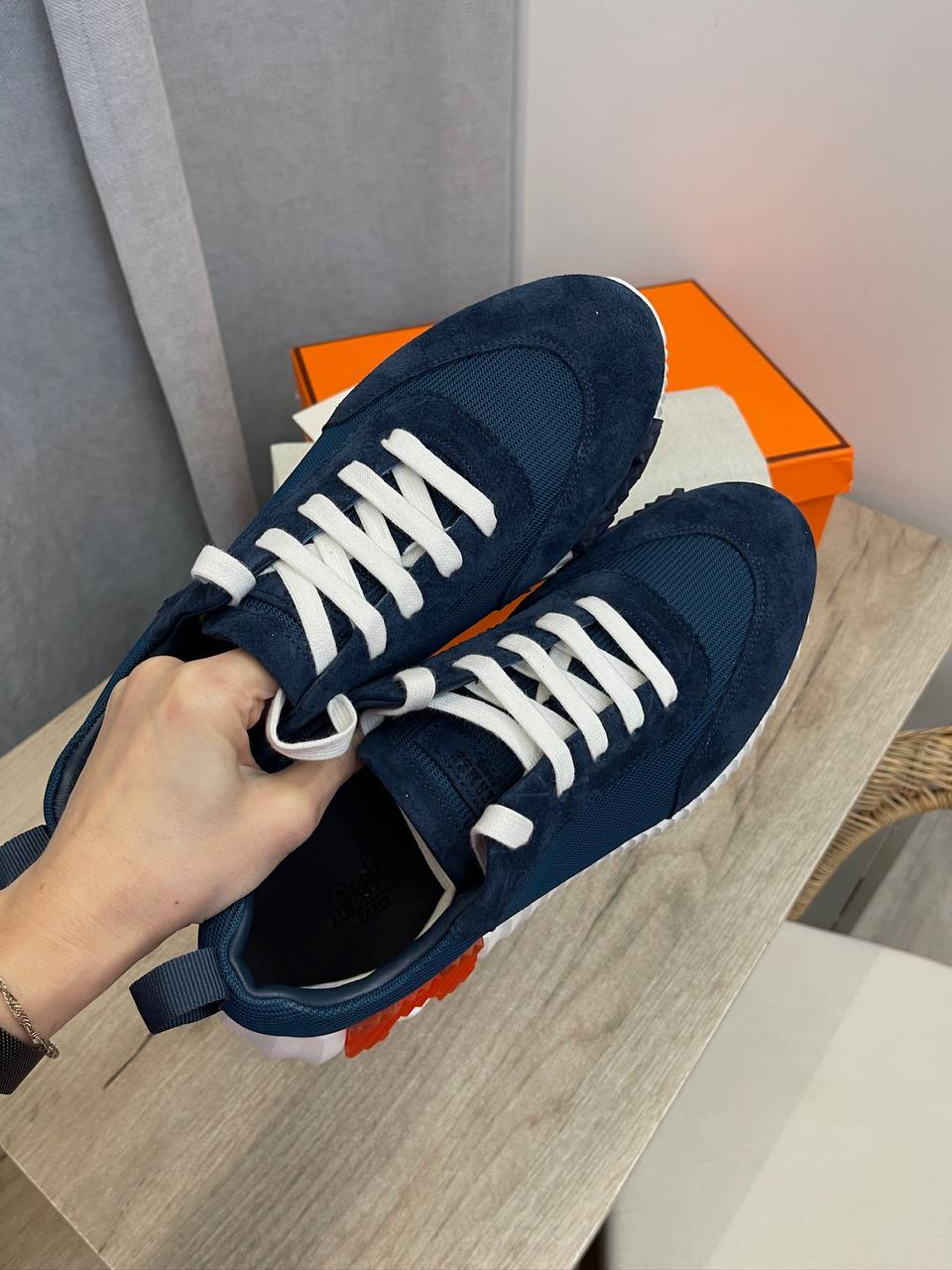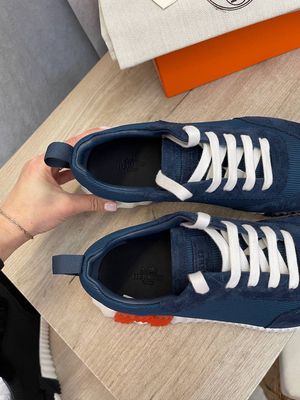 Кроссовки Hermes LUX-107109 – это стильная модель в спортивном стиле, выполненная в темно-синем цвете с белой подошвой. Кроссовки имеют яркий акцент в виде оранжевой детали на заднике. Прекрасно подойдут для создания повседневных образов.