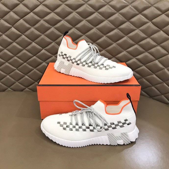 Кроссовки Hermes LUX-107512 представляют собой спортивную обувь в современном стиле. Белый цвет, дополненный оранжевыми деталями, придает им свежий и динамичный вид. Идеально подходят для повседневной носки и активного образа жизни.
