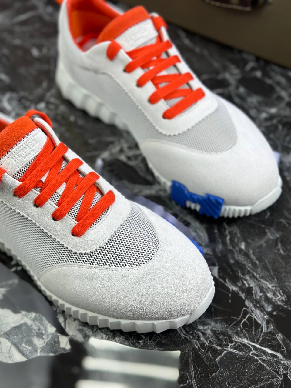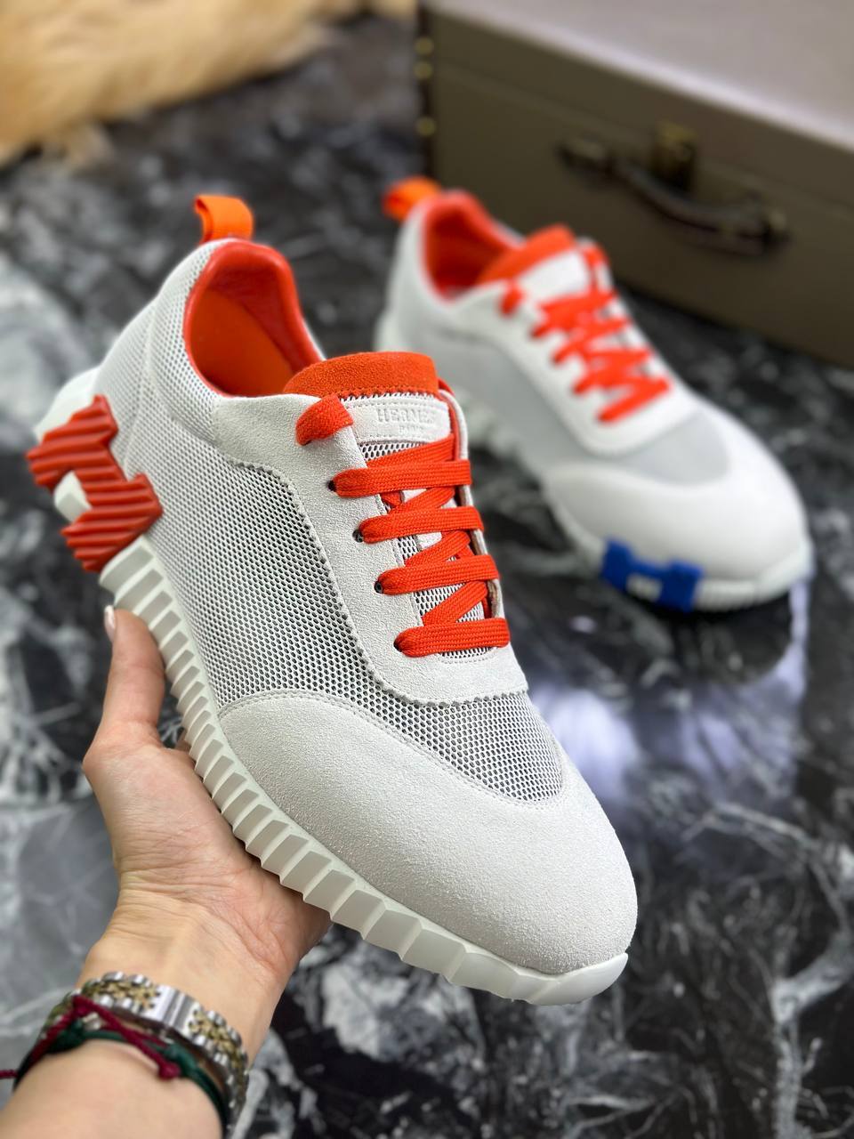 Кроссовки мужские Hermes LUX-86033 – это стильная и современная обувь, сочетающая в себе комфорт и элегантность. Кроссовки выполнены в белом цвете с яркими оранжевыми акцентами, создавая запоминающийся образ. Эта модель отлично подойдет для повседневной носки, подчеркивая индивидуальность и вкус своего владельца.