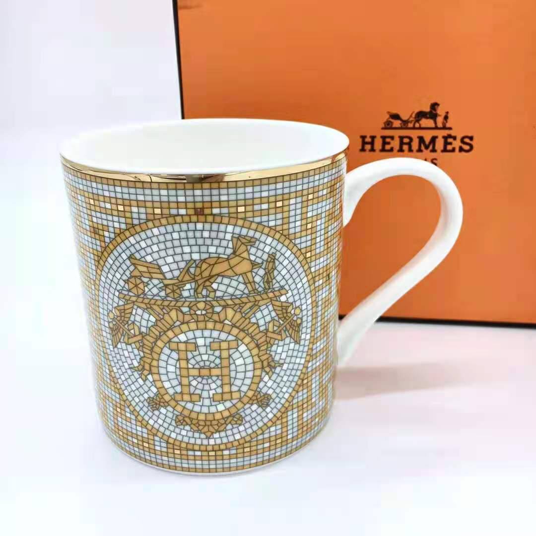 Кружка Hermes LUX-49448 представляет собой элегантное изделие, выполненное в стиле, характерном для бренда Hermes. Декоративный узор в виде мозаики с золотистым орнаментом и изображением герба бренда придает ей изысканный вид. Белый цвет внутренней поверхности и ручки создает контраст с внешним дизайном. Это не просто посуда, а предмет интерьера, способный украсить любую кухню или гостиную.